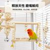 Juguete Combinado para Loro Juego de 3 Piezas Escalera Giratoria de Madera Soporte Columpio para Loro Brocheta para Masticar con Cuentas de Madera