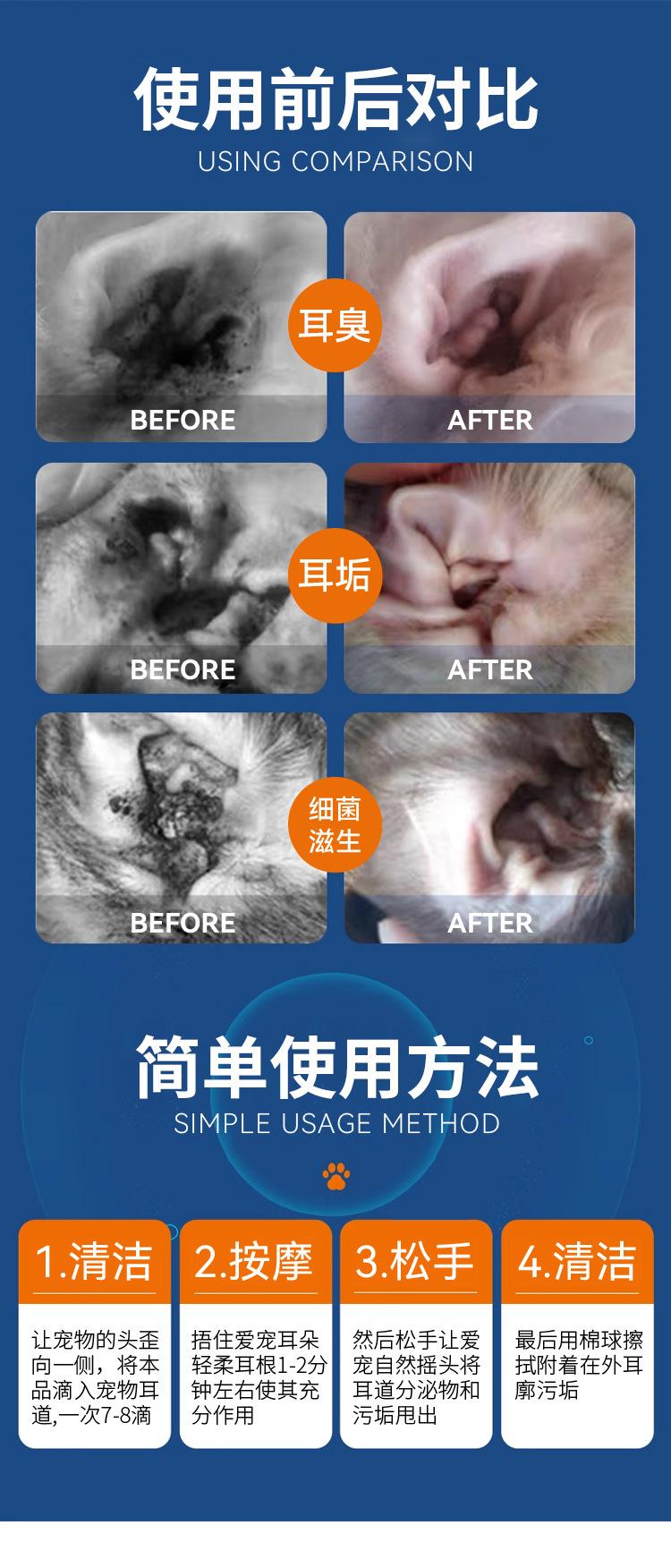 Lavado de Oídos para Mascotas para Eliminar el Olor de Oídos y el Cerumen para Gatos y Perros Limpieza de Oídos y Líquido Limpiador para Perros y Gatos