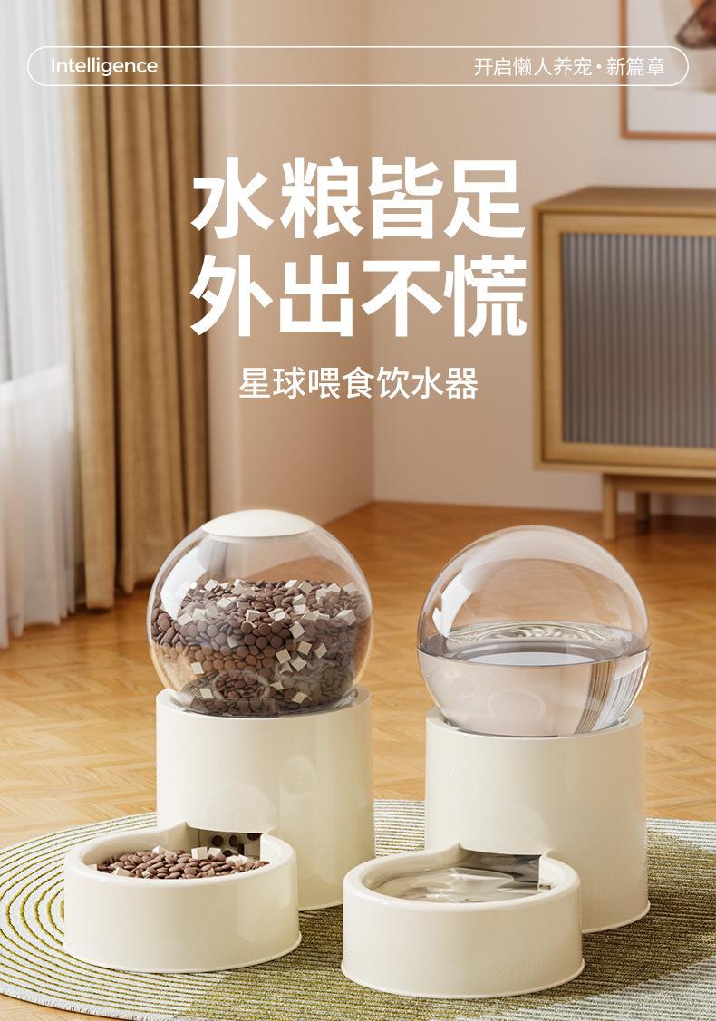 Pet Drinking and Feeding Device (Rice White Planet Style), Pet Drinking and Feeding Dispenser (Rice White Colu...