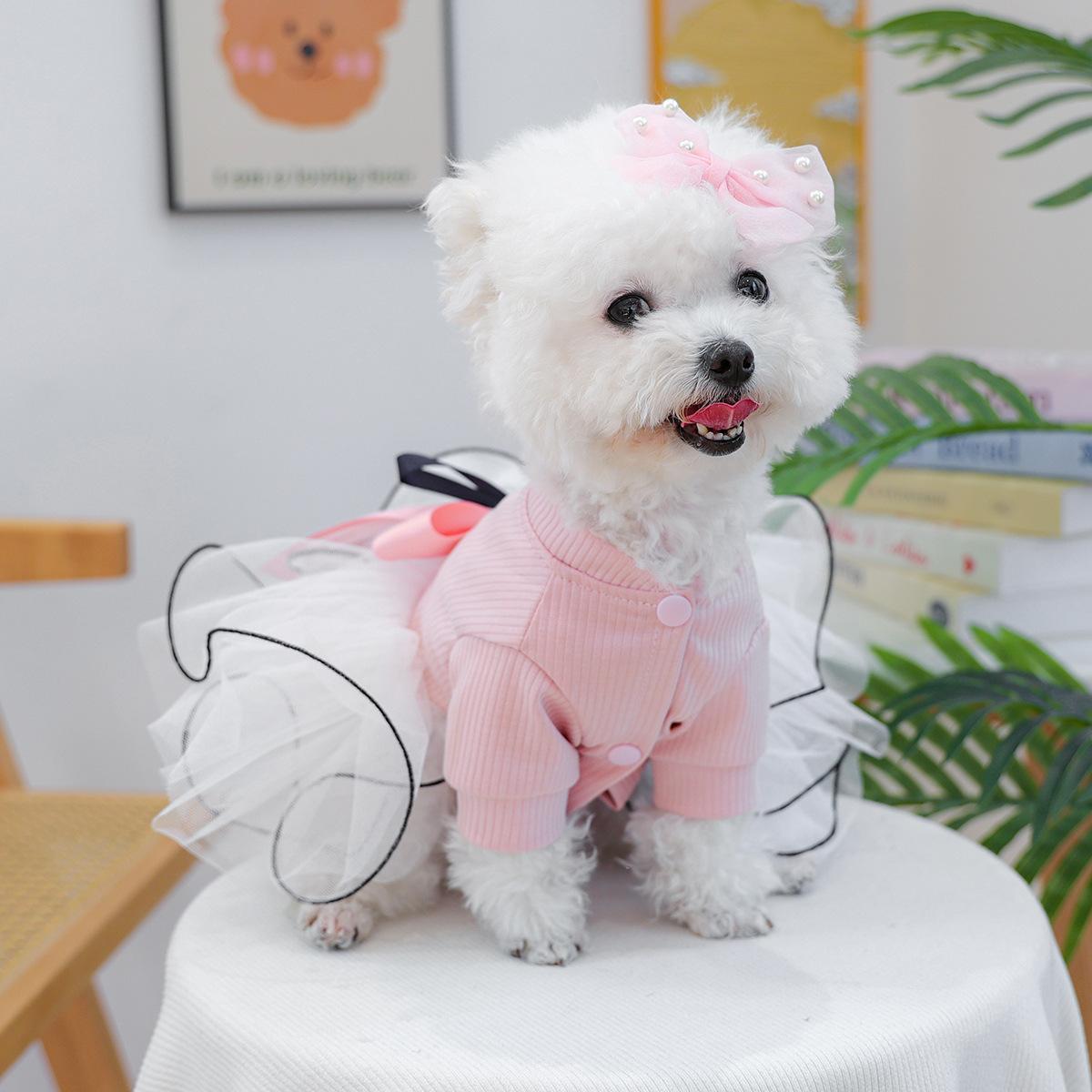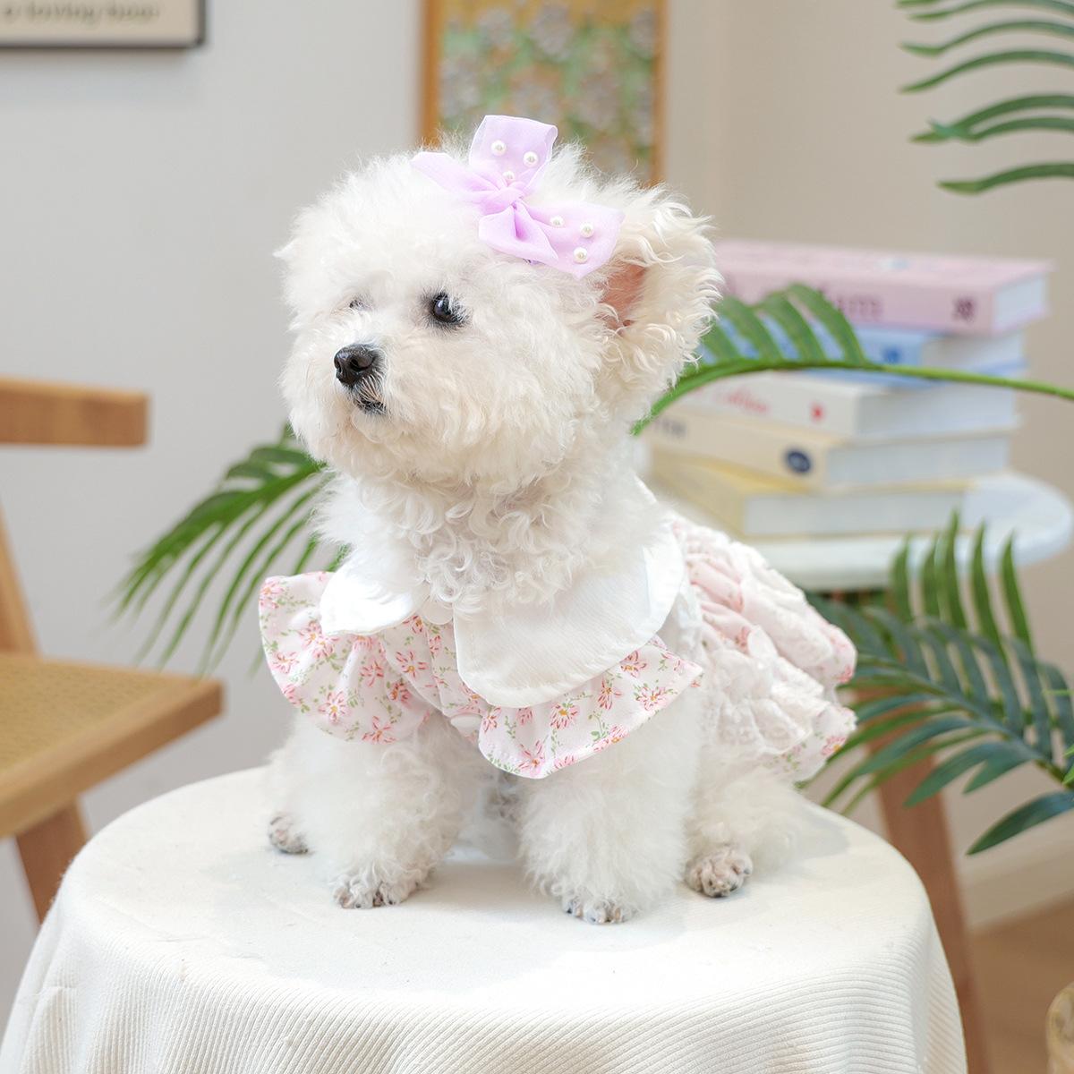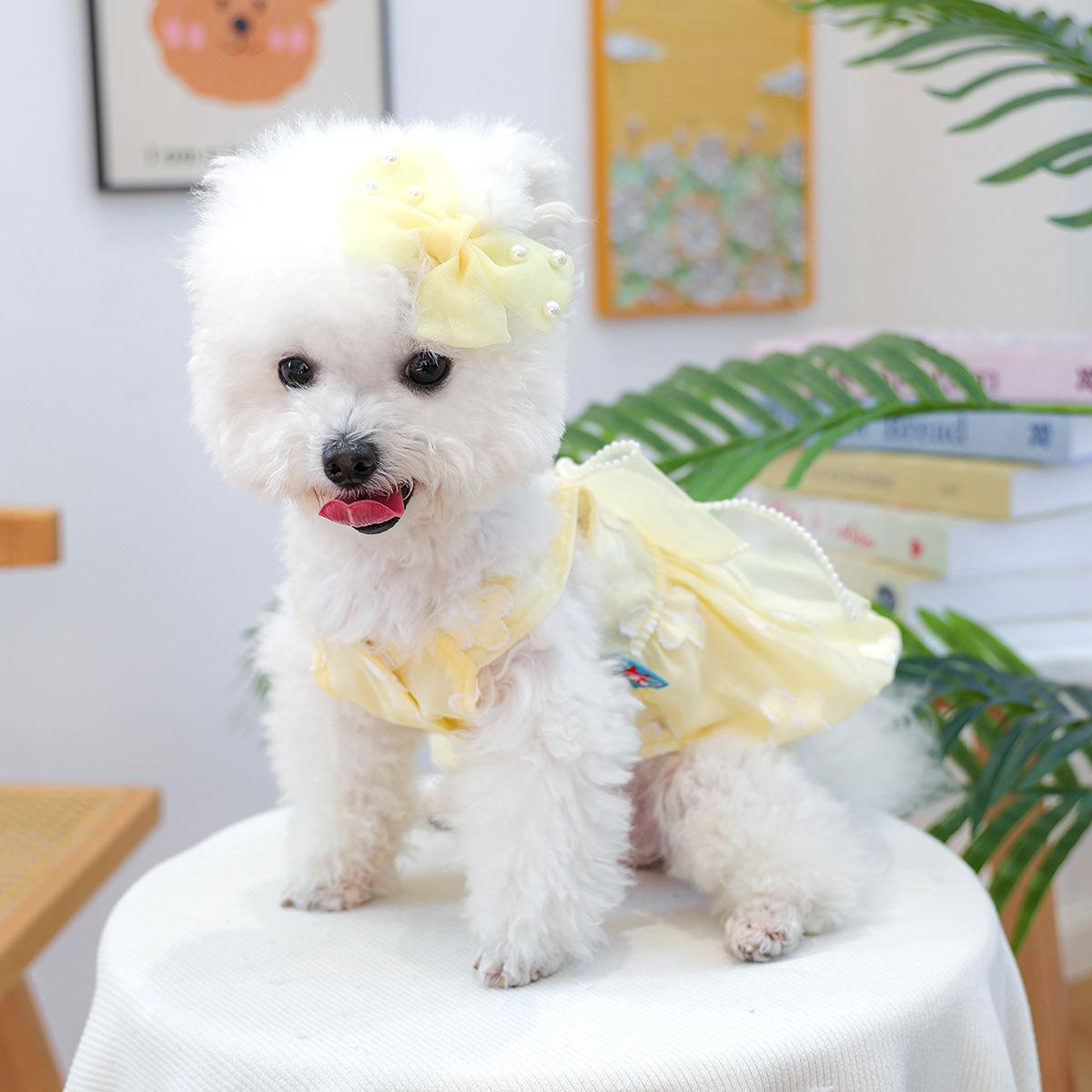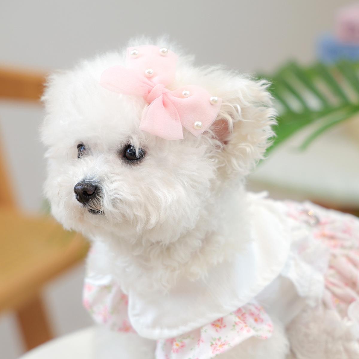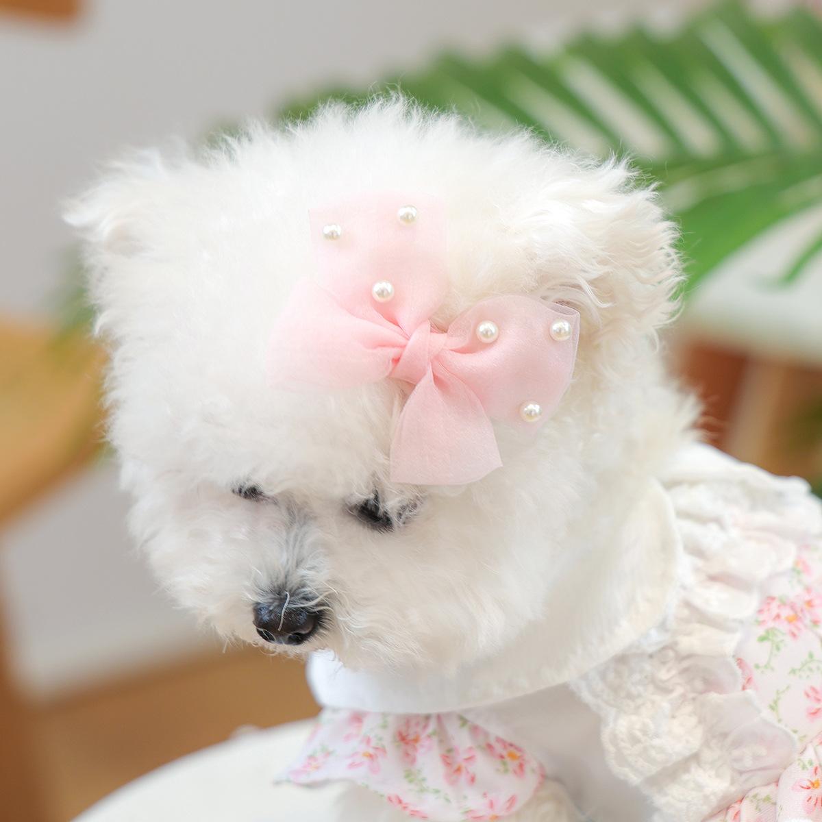 Ropa para Mascotas Perro Gato Ropa Ropa Perro Pequeño Cachorro Lindo Accesorios Hilo de Perlas Lazo de Alta Gama Horquilla