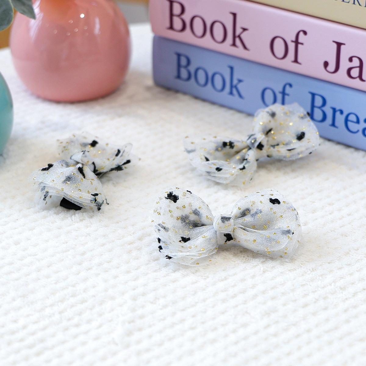 1pc gold sprinkled gauze ribbon fragrant bow hairpin