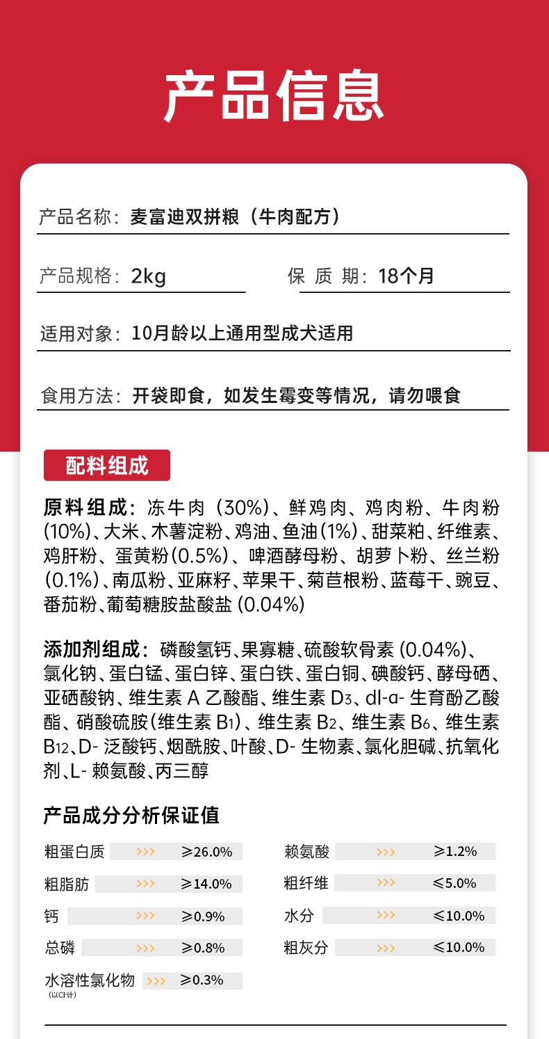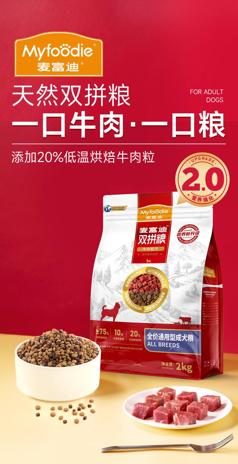 Mcfoody 2.0 Teddy Erha Golden Retriever Perro Adulto de Tamaño Mediano y Grande Alimento General para Perro 2kg Res Alimento Doble para Perro