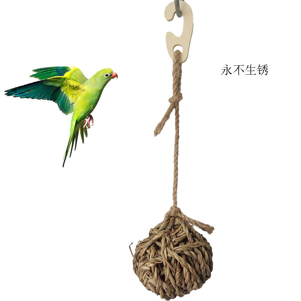Ventas Calientes Transfronterizas Bola de Cuerda de Algas Inoxidable Juguete para Loro Gancho de Madera Cuerda Marrón Bola de Hierba Juguete para Masticar para Pájaros