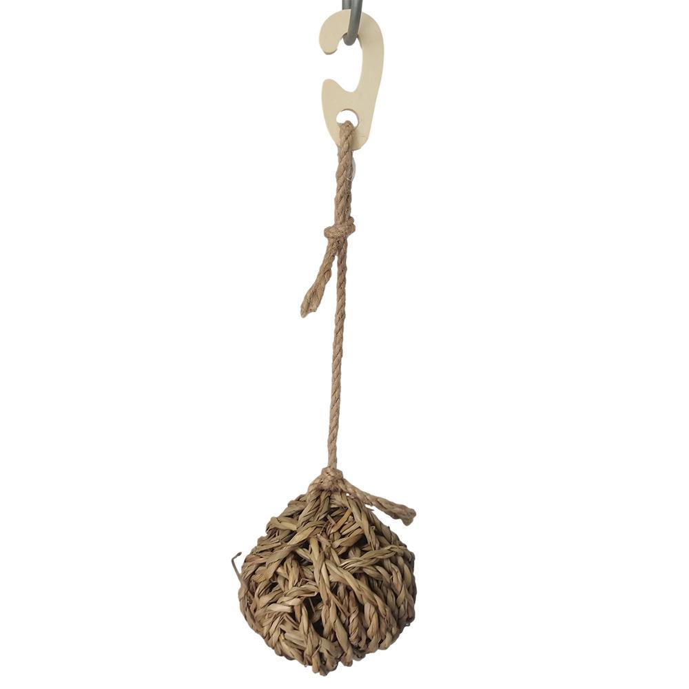Ventas Calientes Transfronterizas Nunca se Oxida Bola de Cuerda de Alga Marina Juguete para Loro Gancho de Madera Cuerda Marrón Bola de Hierba Juguete para Masticar Aves