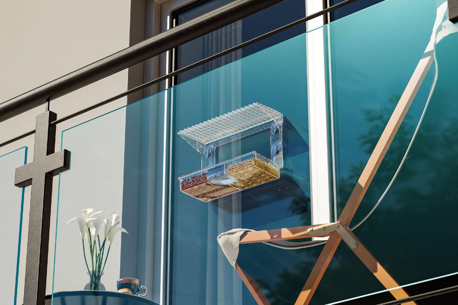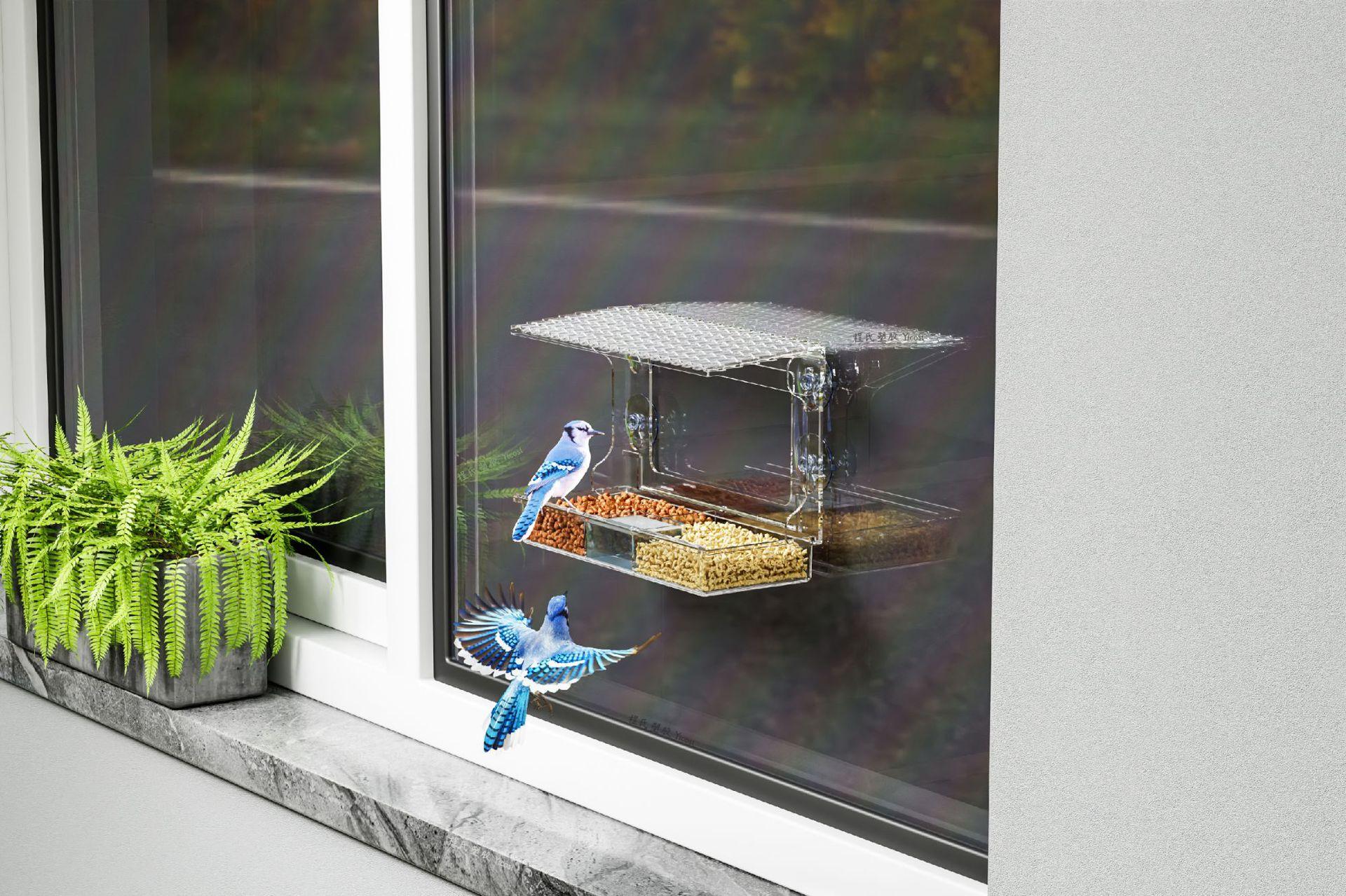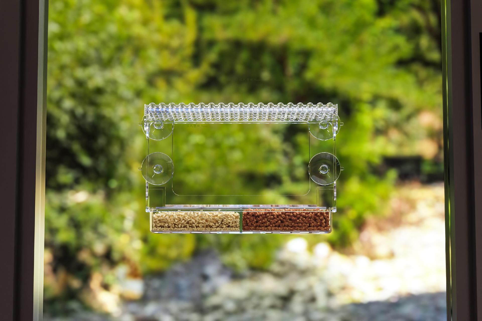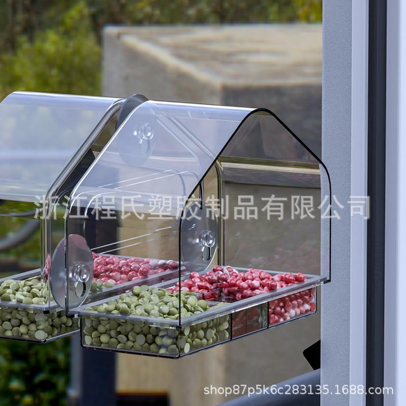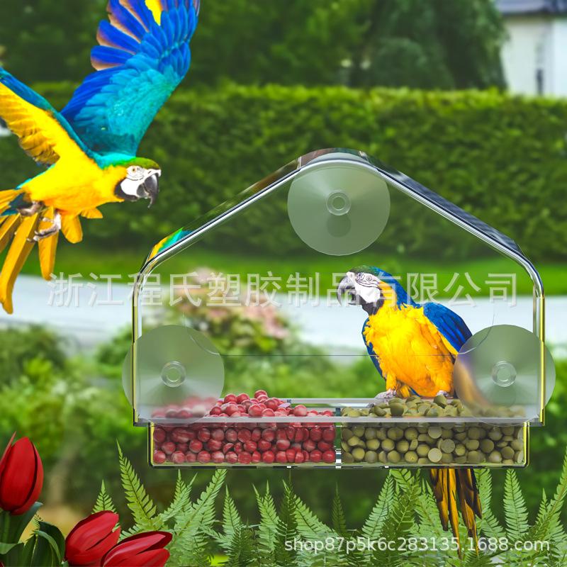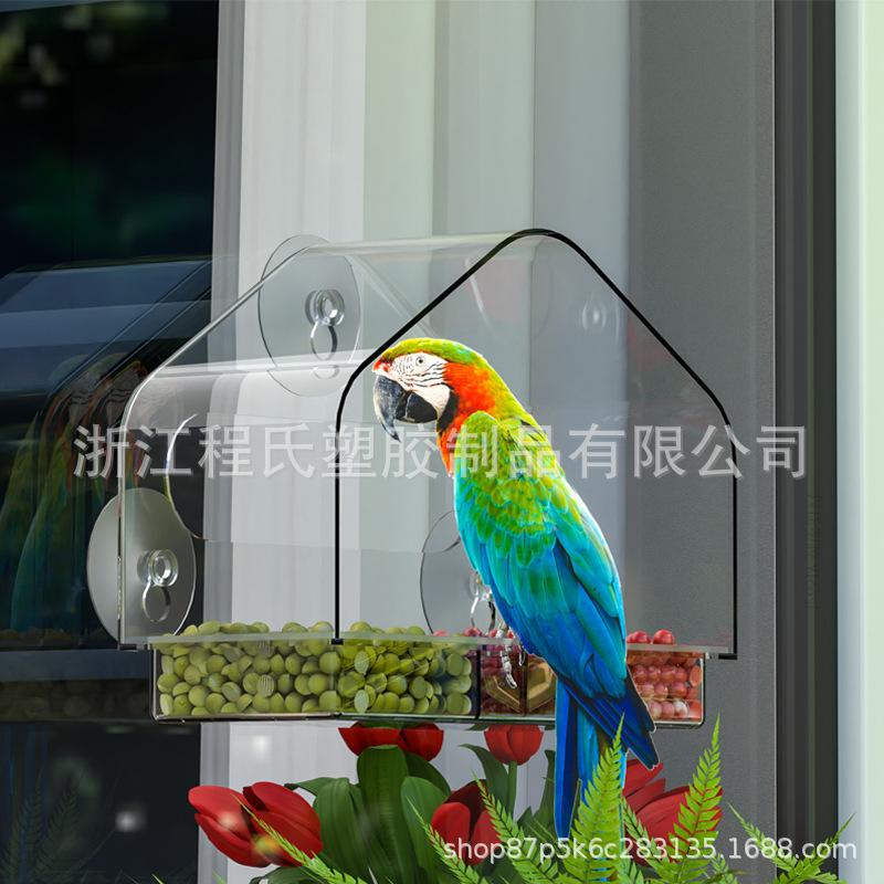 Jaula para pájaros mascota transfronteriza de Amazon Comedero para pájaros de ventana exterior Casa para pájaros de plástico transparente con succión potente sin perforaciones