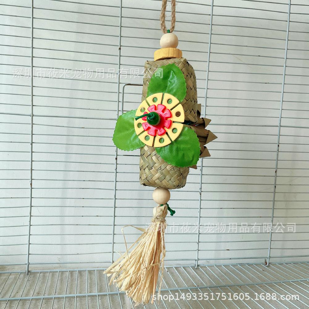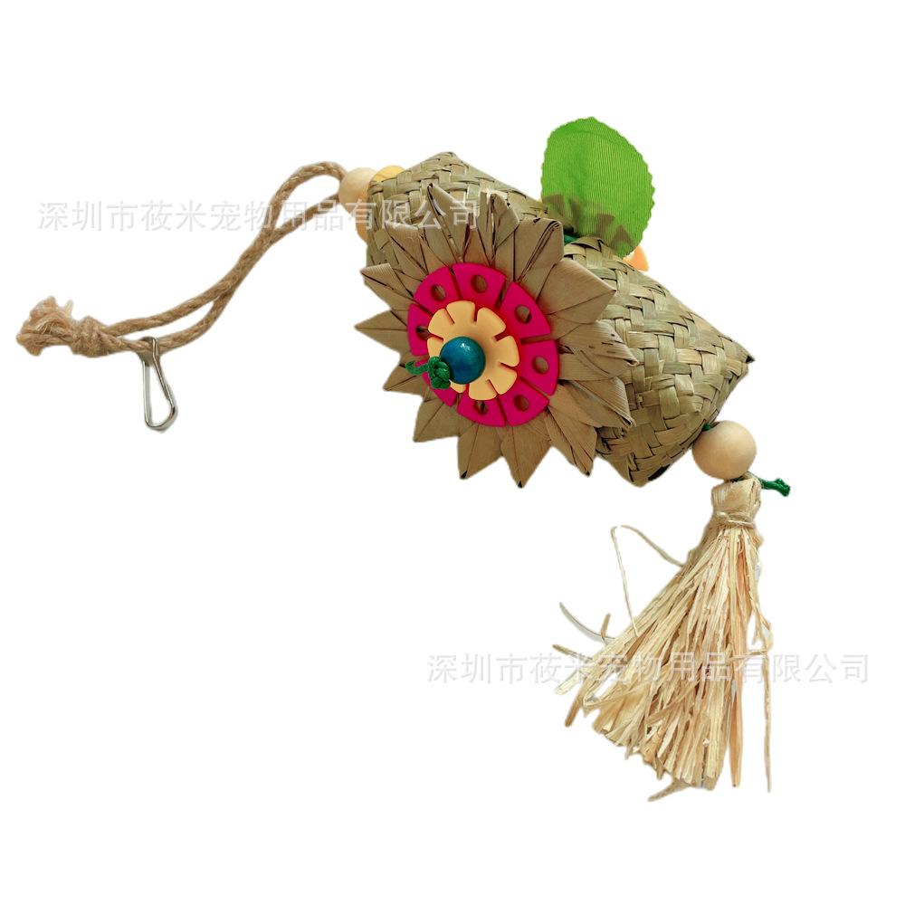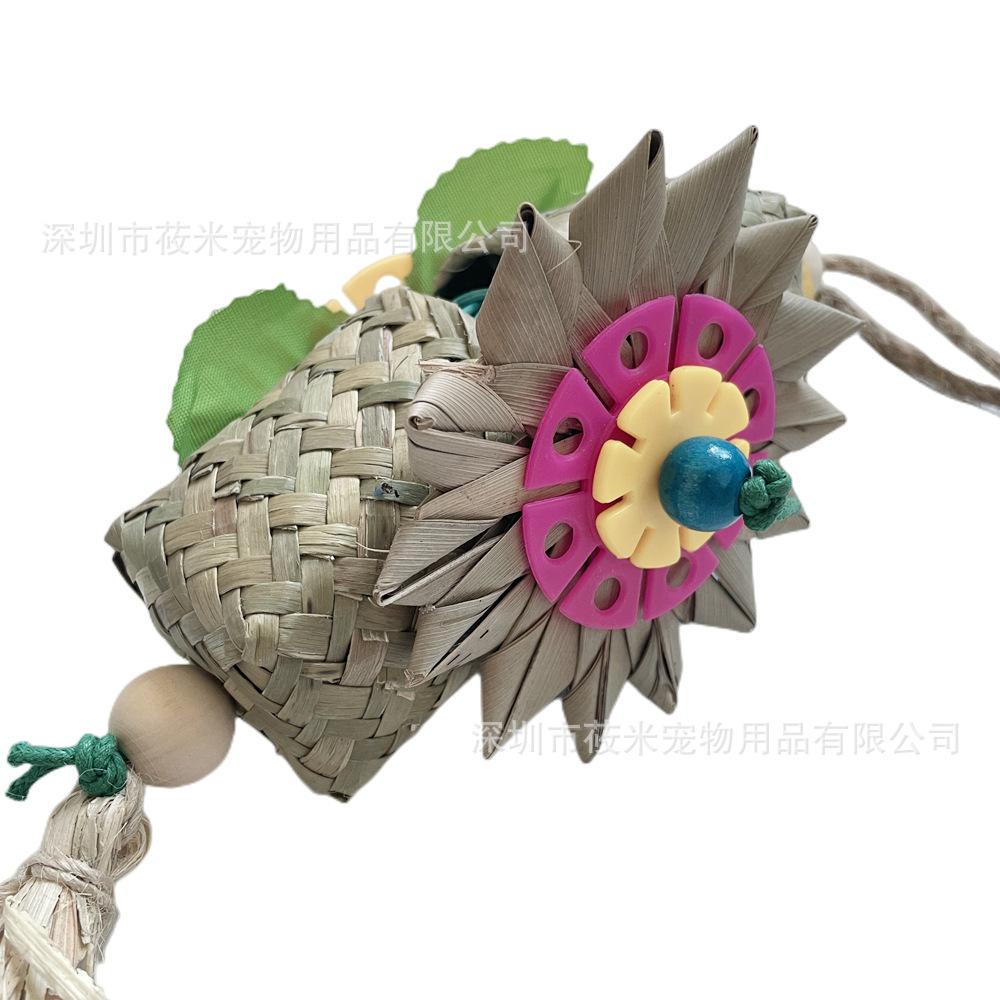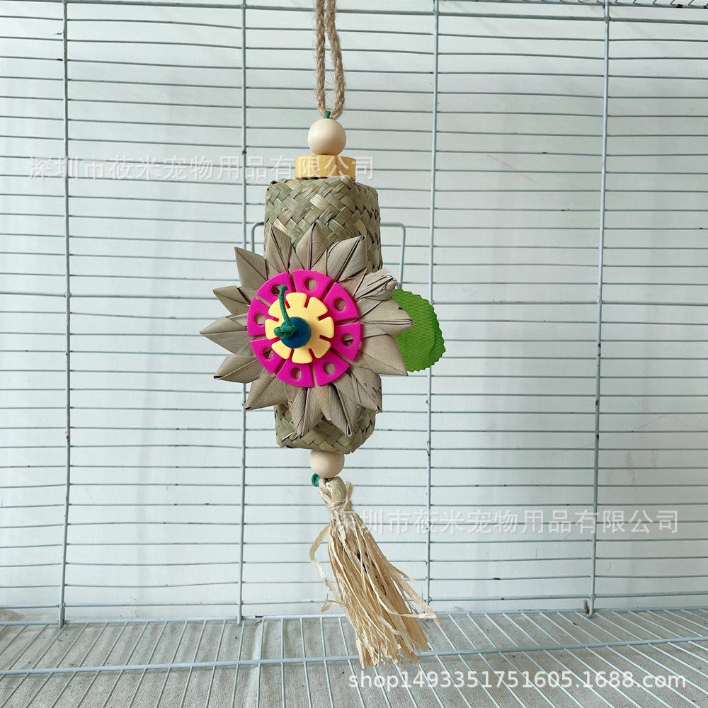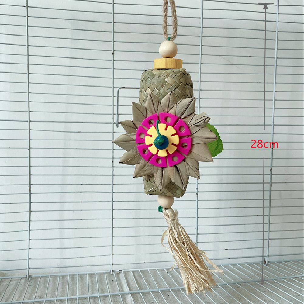 Juguete para loro, juguete para pájaro, tejido de hoja de palma, juguete para roer, seda de maíz natural, molar, alivia el aburrimiento y juguete para morder