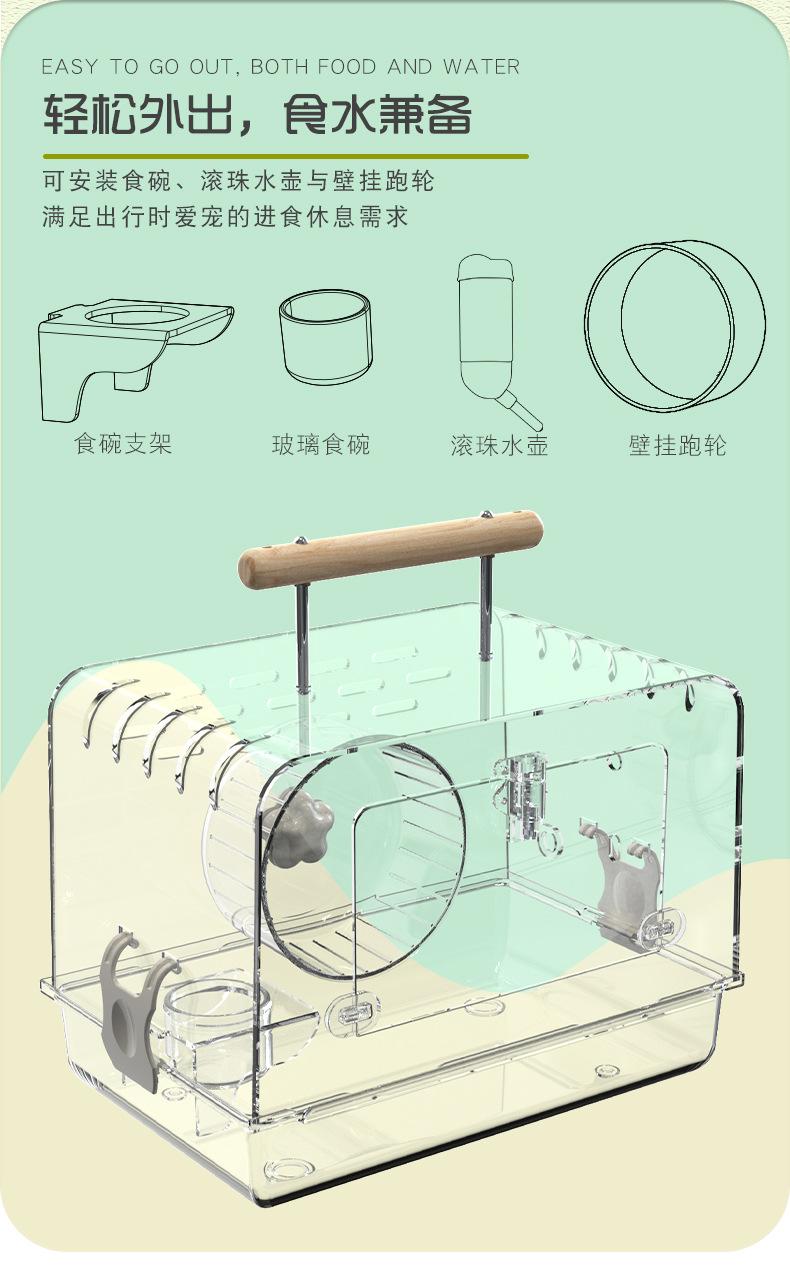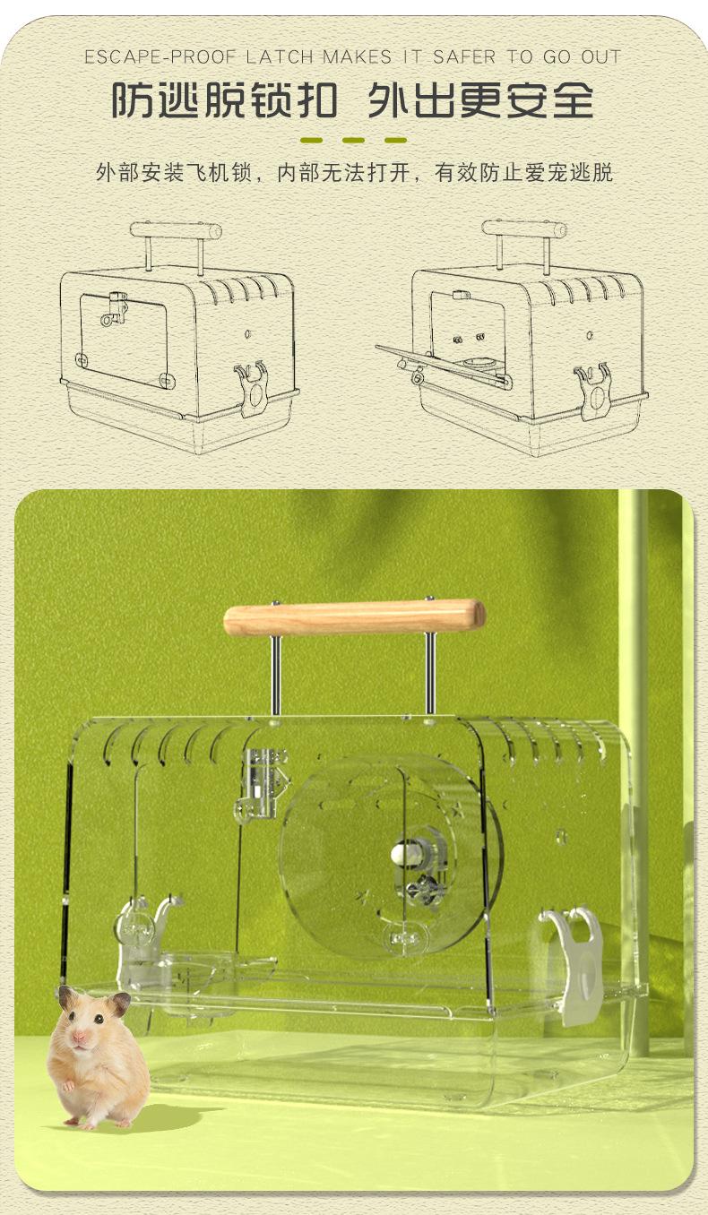 Jaula exterior para hámster acrílico transparente anti-mordida enano Hámster Dorado Totoro jaula exterior suministros portátiles nido