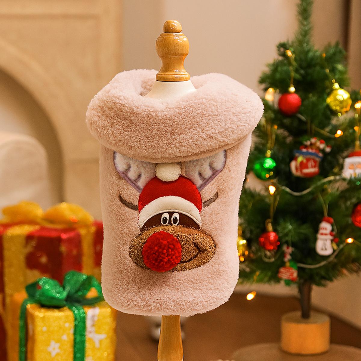 Otoño e Invierno 2025 Halloween Mascota Cachorro y Gatito Lindo Ropa de Moda Casual Chaleco de Alce Engrosado-Rosa