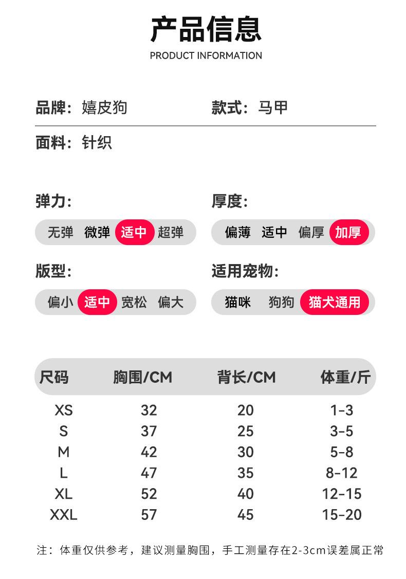 Xs (recommended weight 0.5-1.5kg ), S (recommended weight 1.5-2.5kg ), M (recommended weight 2.5-4kg ), L (rec...