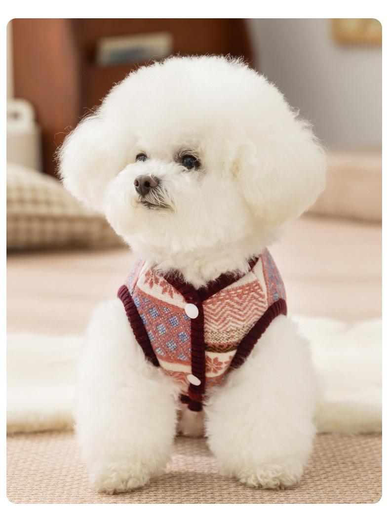 Ropa Nueva de Otoño e Invierno para Perro Chaleco Copo de Nieve Fair Isle Perro Teddy Bichón Talla Pequeña Algodón Abrigo Ropa para Mascota