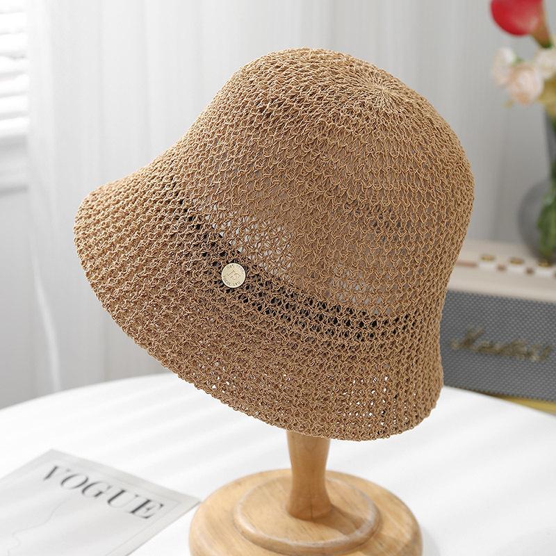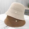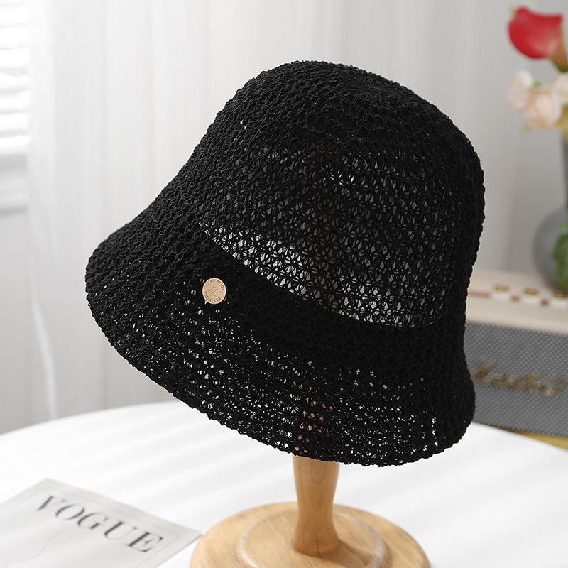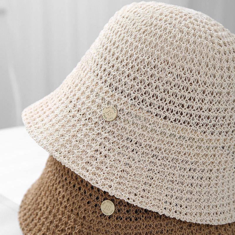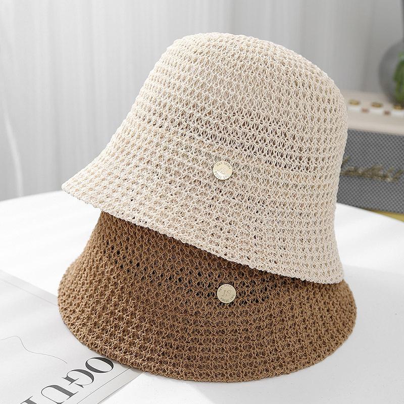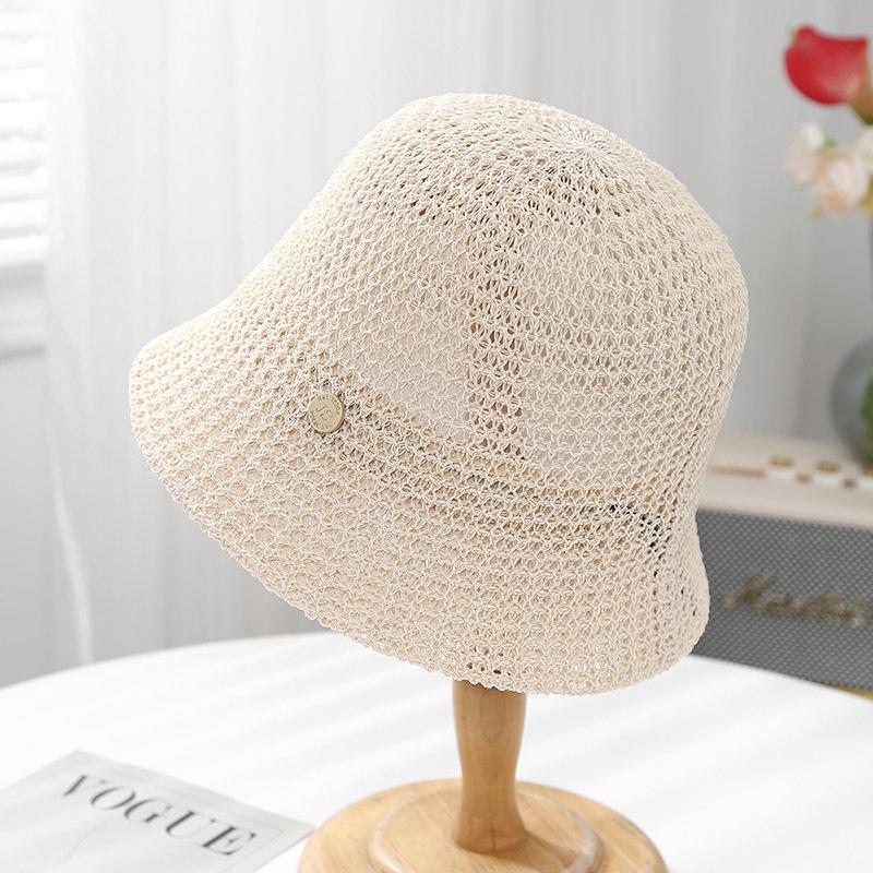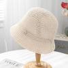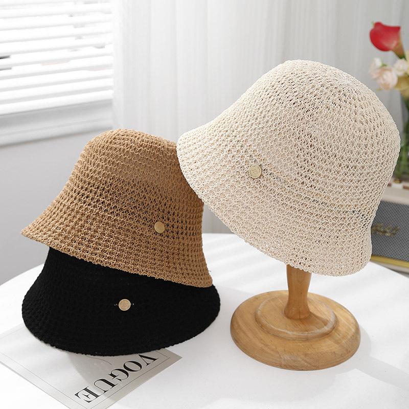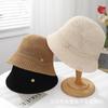 Sombrero de Cubo Simple Versátil para Primavera y Verano para Mujer con Logo Redondo Pequeño para Salidas, Sombrero de Pescador de Punto para Sombra para Adelgazar el Rostro