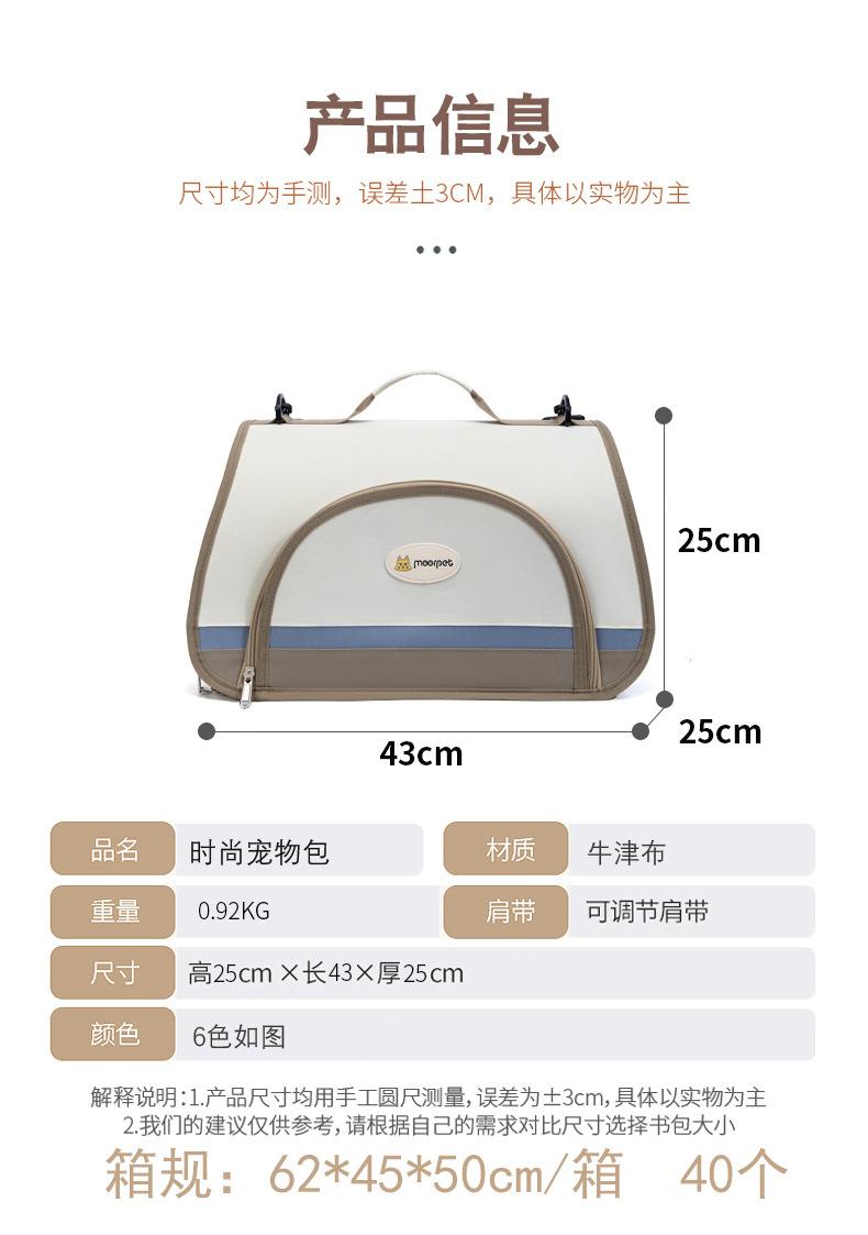 Suministro Directo del Fabricante Bolsa para Gato Bolsa para Perro Bolsa para Mascota Un Hombro Salida Portátil Gran Capacidad Bolsa para Mascota Bolso de Mano Transpirable