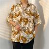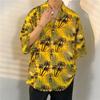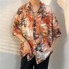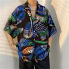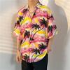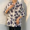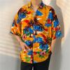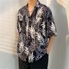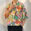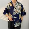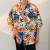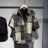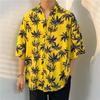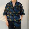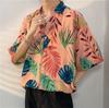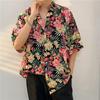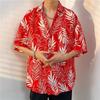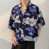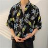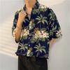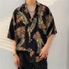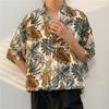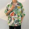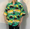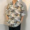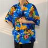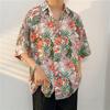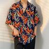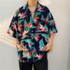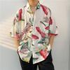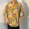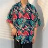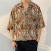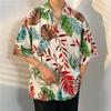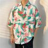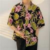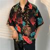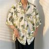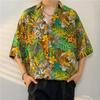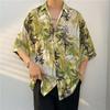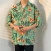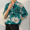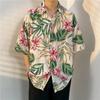 Camisa Americana Retro Verde Floral de Manga Corta para Hombre, Camisa Casual Holgada de Verano de Media Manga, Top Versátil de Alta Calle