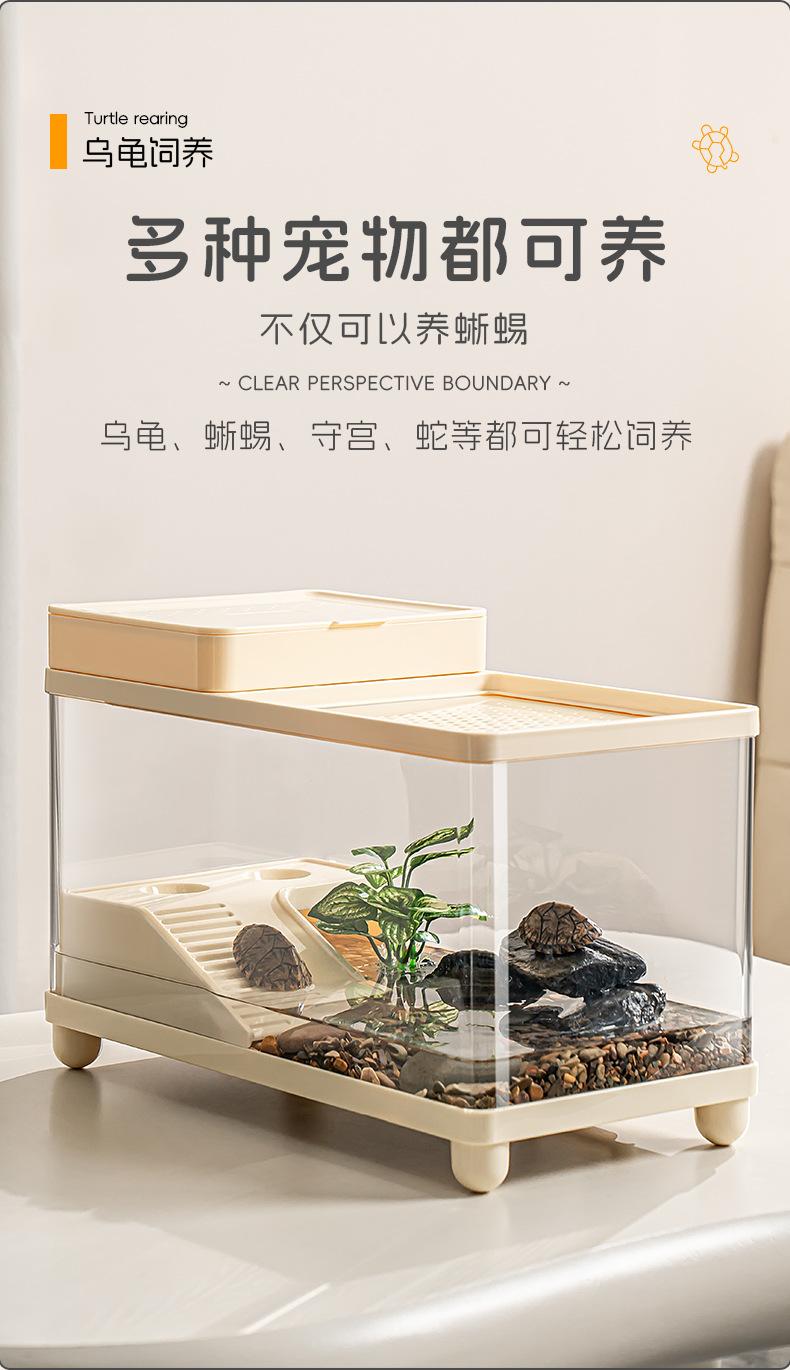 Tanque de Cría de Tortugas Paisajismo Ecológico Hogar Caja de Almacenamiento para Reptiles Pequeños con Tapa Acuario Multifuncional Caja de Almacenamiento