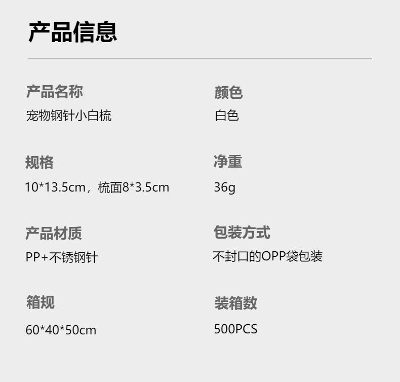 Peine de aguja de acero inoxidable para mascotas al por mayor perro gato depilación peine blanco limpieza depilación peine suministros para mascotas
