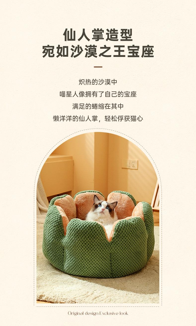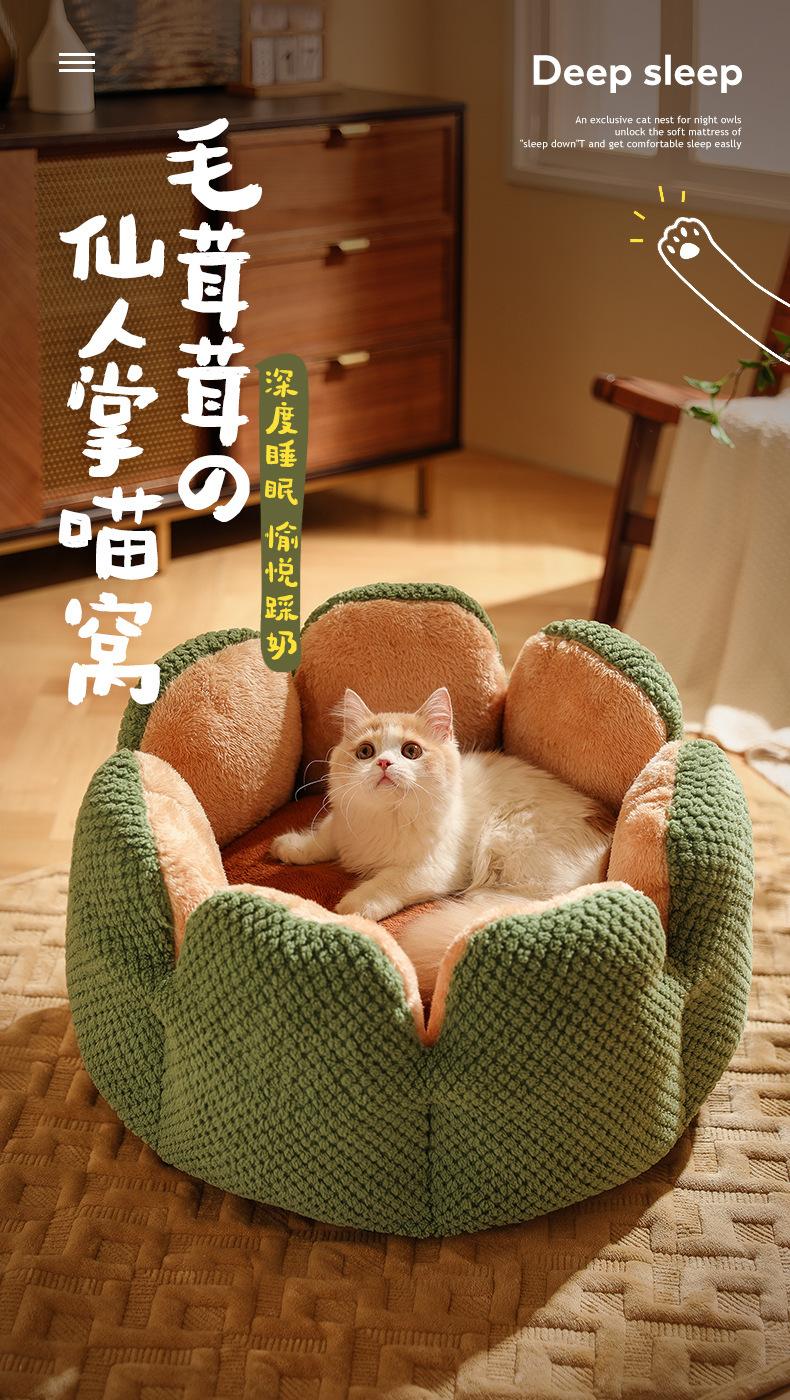 Nuevo Nido para Mascotas Cactus Forma de Pétalo Nido Espacio Grande Suave Nido para Dormir para Gatos Nido Colchoneta para Gatos y Perros Venta al por Mayor