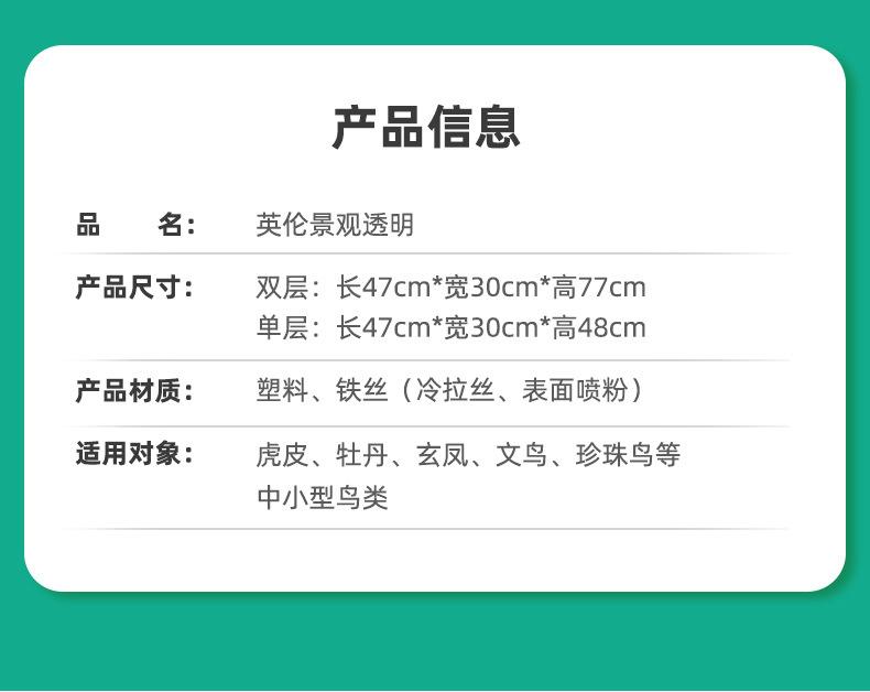 Jaula para Pájaros Transparente Jaula para Pájaros Paisaje Periquito Ninfa Peonía Ojo Bordado Jaula Grande Villa Jaula Ornamental