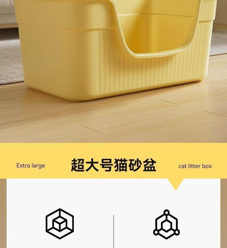 Caja de Arena para Gatos Anti-Salpicaduras Caja de Arena Gigante para Gatos Abierta de Una Pieza Extra Grande Inodoro para Gatos Semicerrado Anti-Salpicaduras