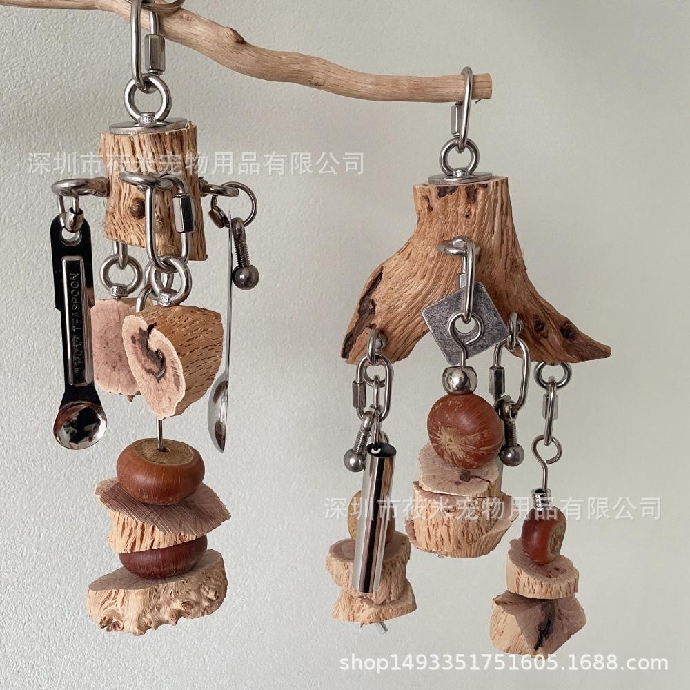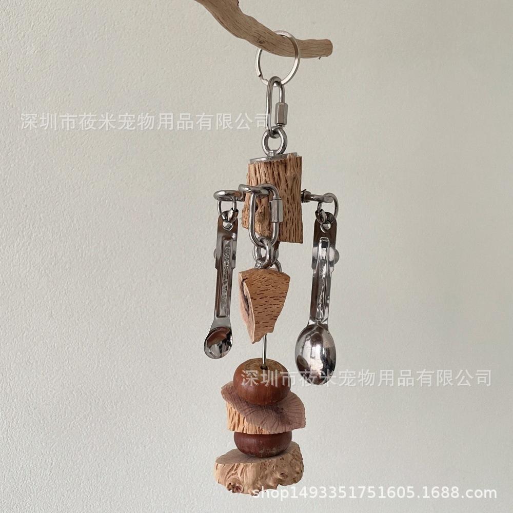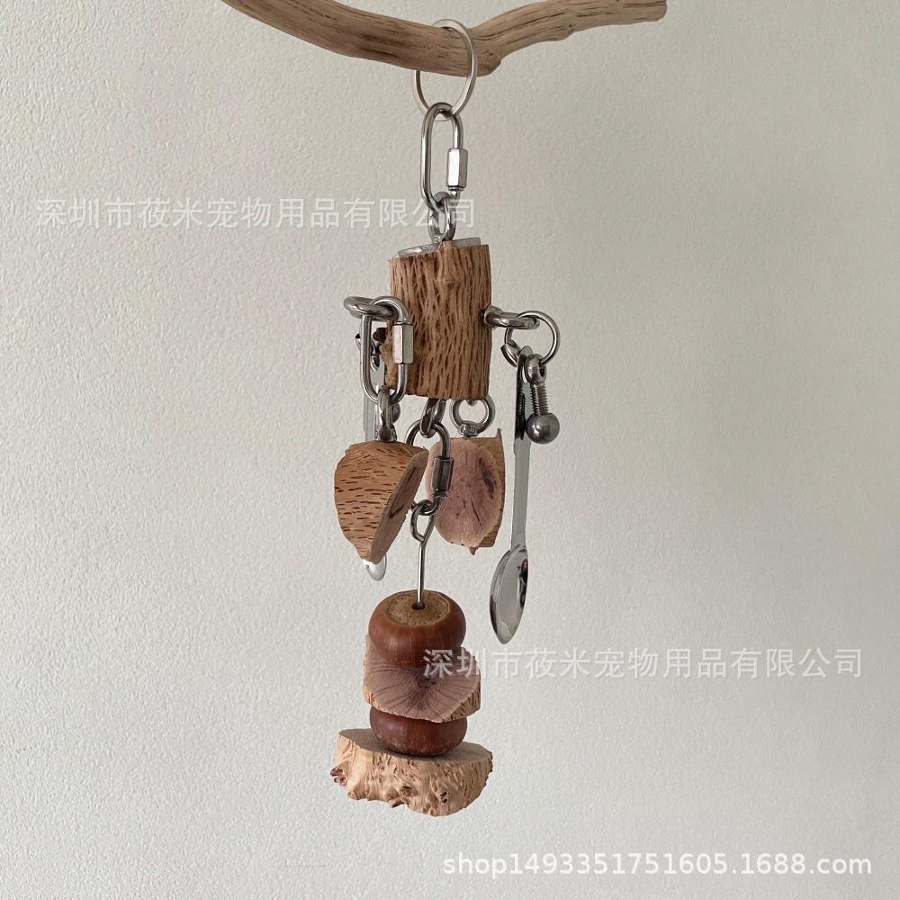 Cuerda para Morder de Acero Inoxidable y Madera de Pera Silvestre para Loro Mediano a Grande