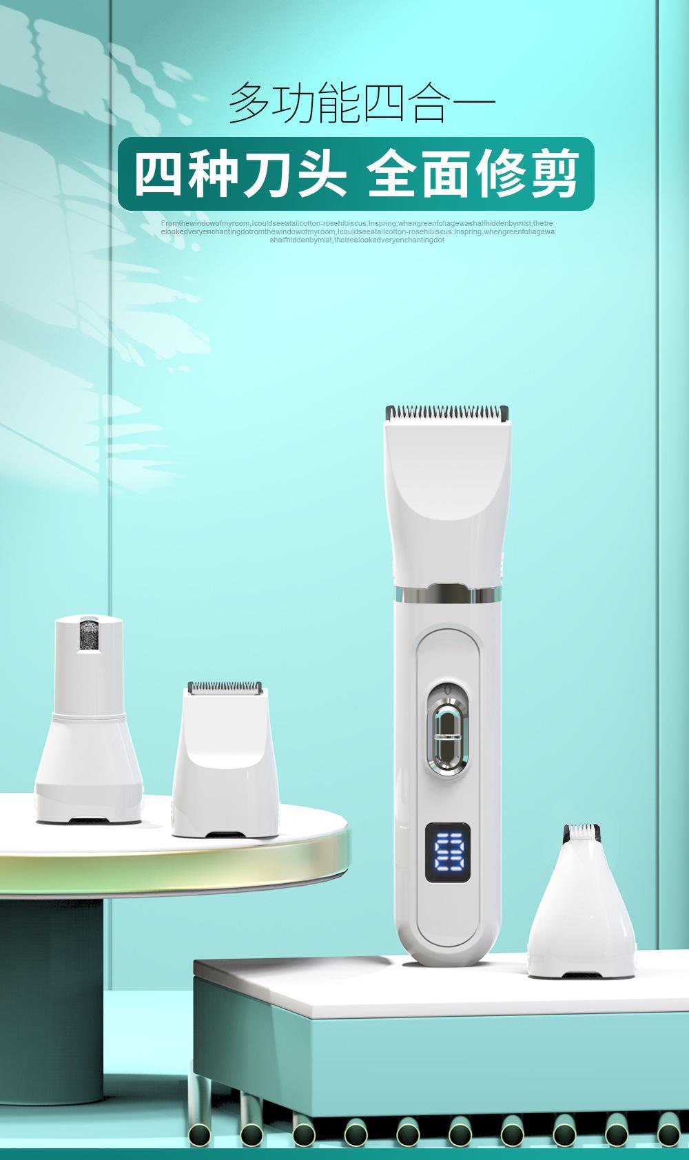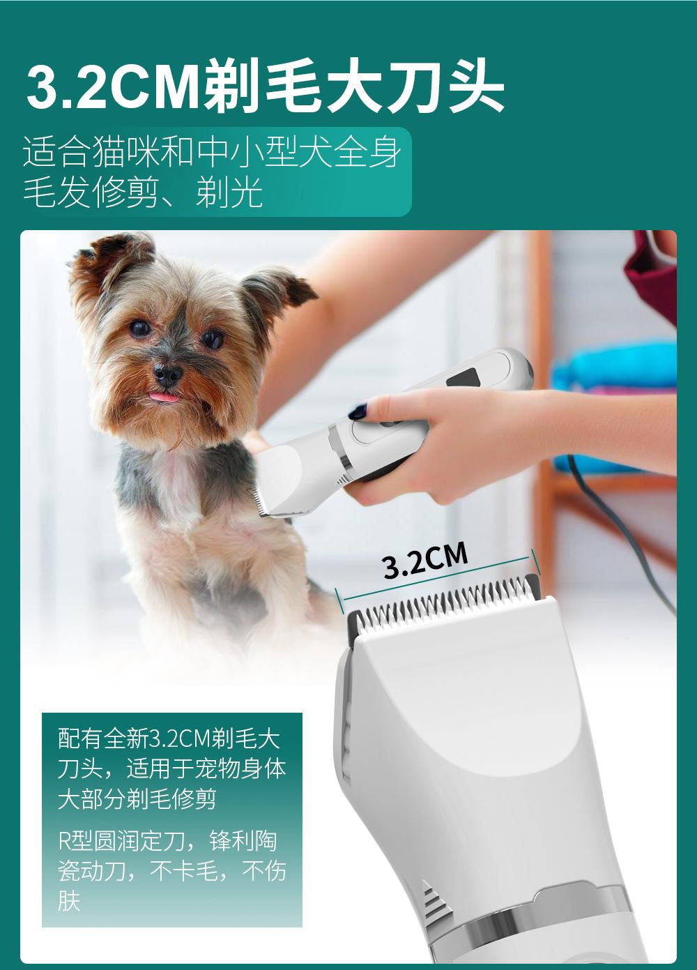 Accesorios: 1 unidad principal (incluyendo cuchilla ancha) + 2 peines guía 3mm/9mm) + 1 cabezal de afilado + 1 cuchilla estrecha + 1 cabezal recortador de patas (peine guía 5.5mm) + 1 cable USB + 1 cepillo de limpieza + 1 manual en inglés