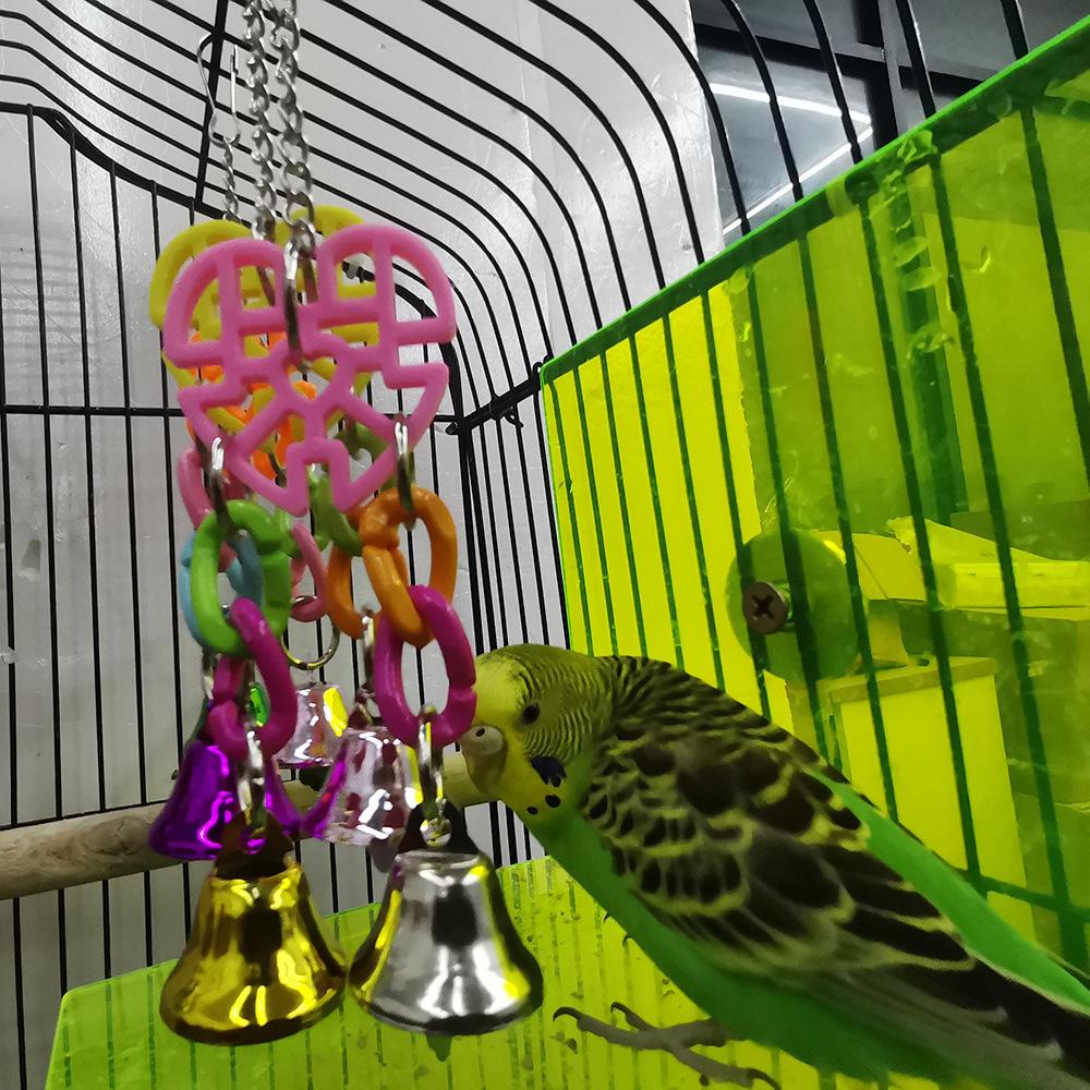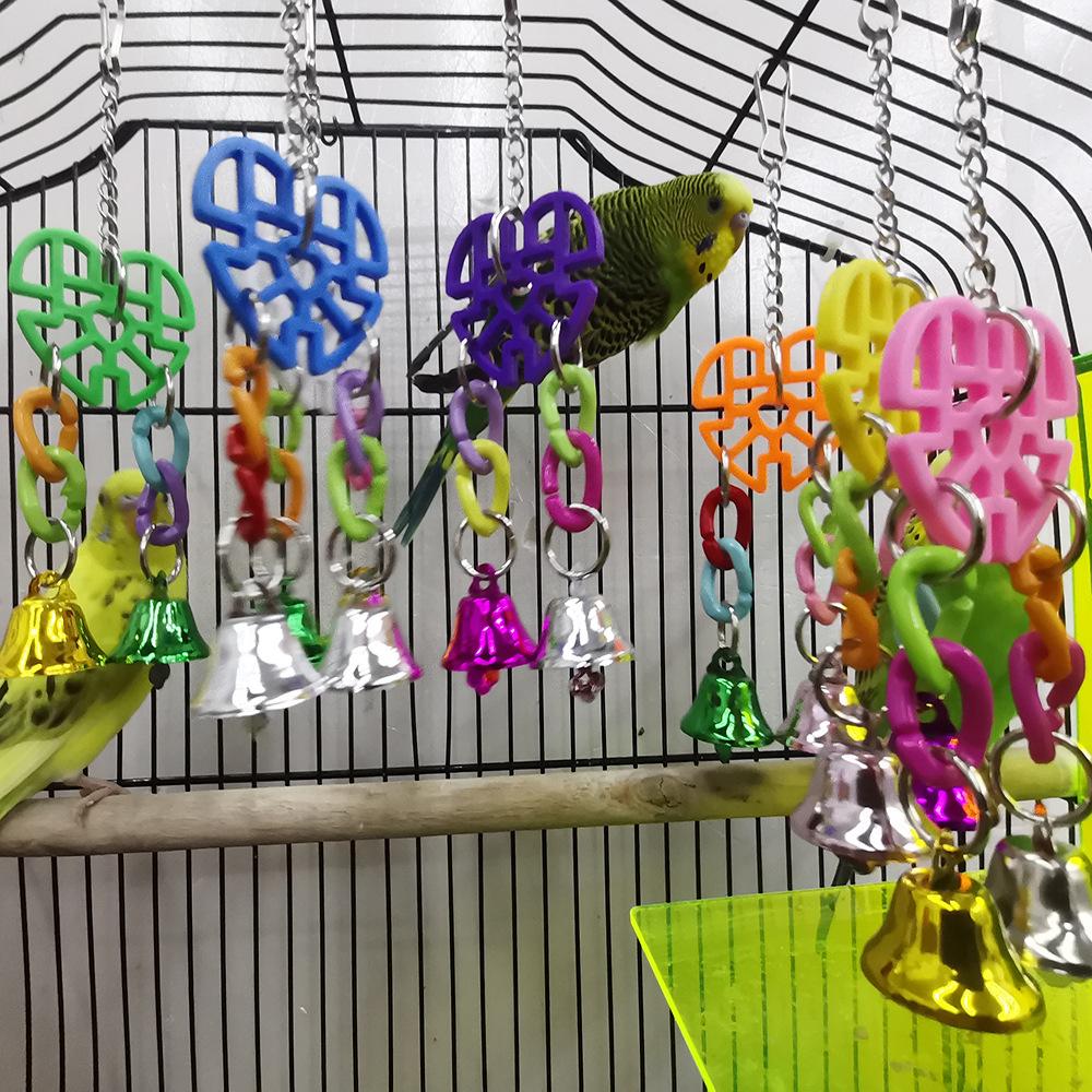 Campana de viento nueva en forma de corazón de venta caliente transfronteriza, juguete de loro con campana de cadena colorida interactivo para pájaros, color aleatorio
