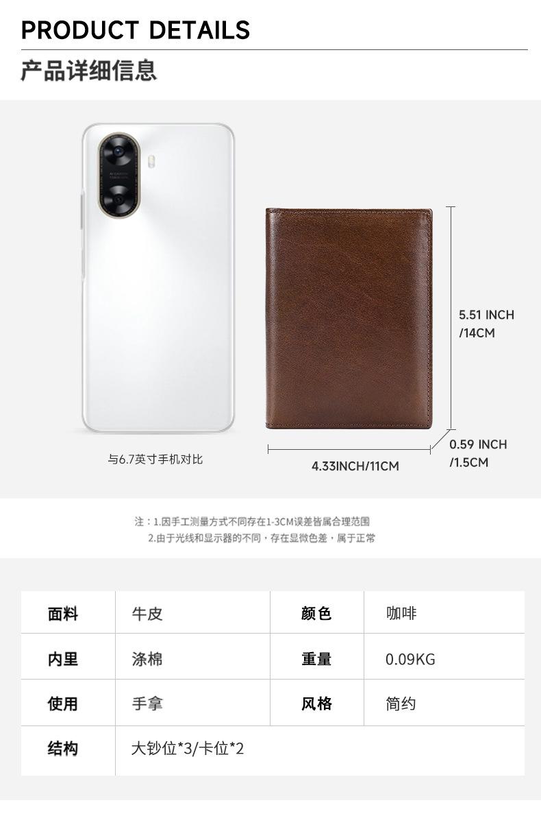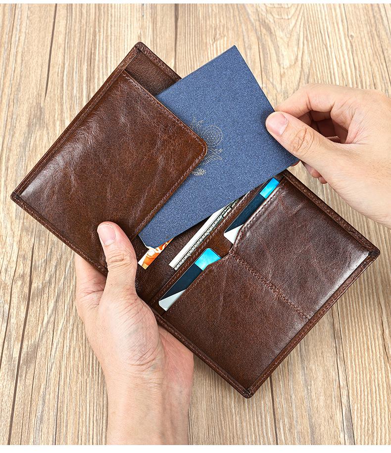 Billetera Vintage de Cuero Genuino para Hombre Capa Superior de Piel de Vaca Billetera Clásica Simple Monedero de Alta Gama Antirrobo Billetera de Cuero para Hombre