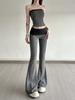 Pantalones Casuales Americanos Acampanados para Mujer Verano Delgados Sueltos Fluidos Pantalones Deportivos Color Sólido Cintura Alta Adelgazantes Pantalones de Pierna Ancha Tendencia