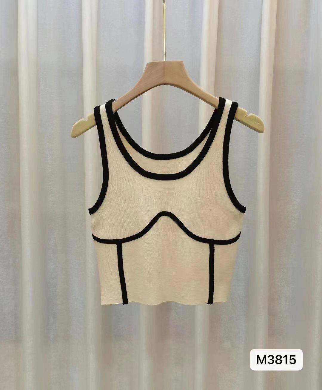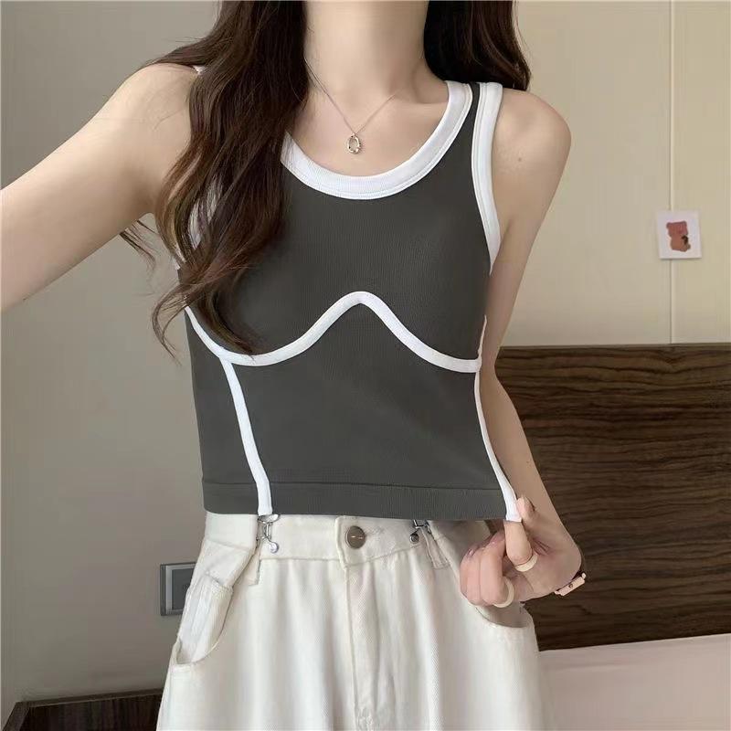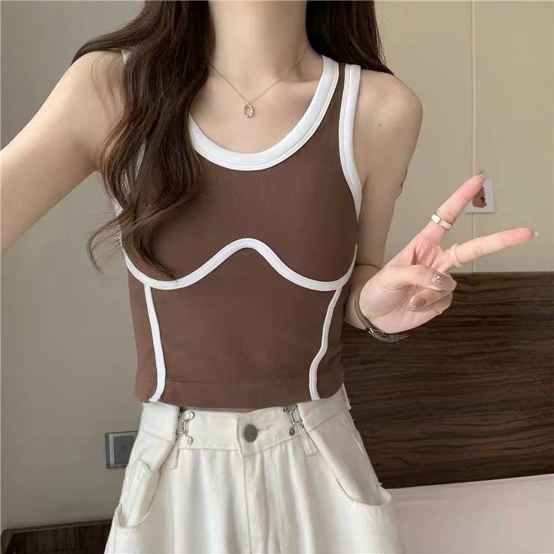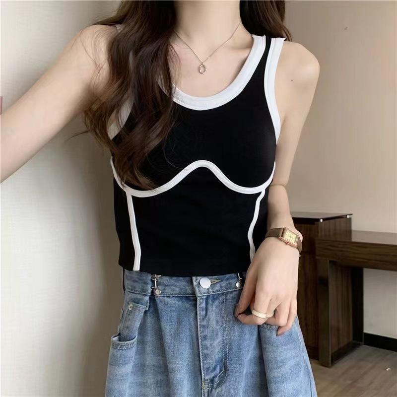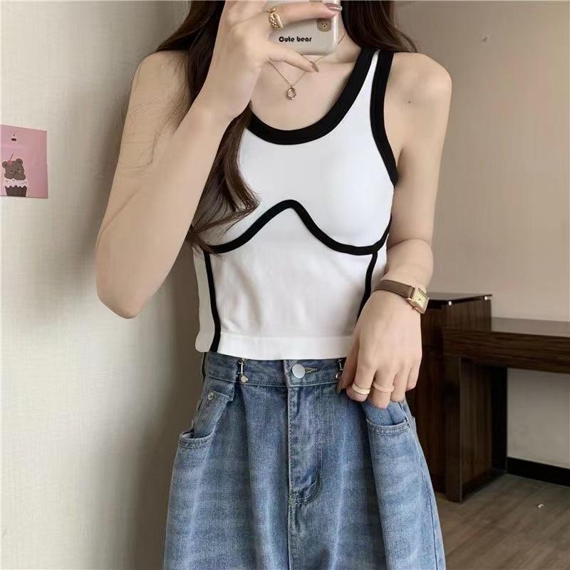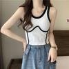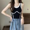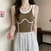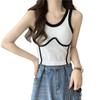 Camisola de Moda de Color de Contraste Corta de Chica Picante Pura para Mujer Otoño Verano Invierno Camisa Base Interior Top Sexy sin Mangas
