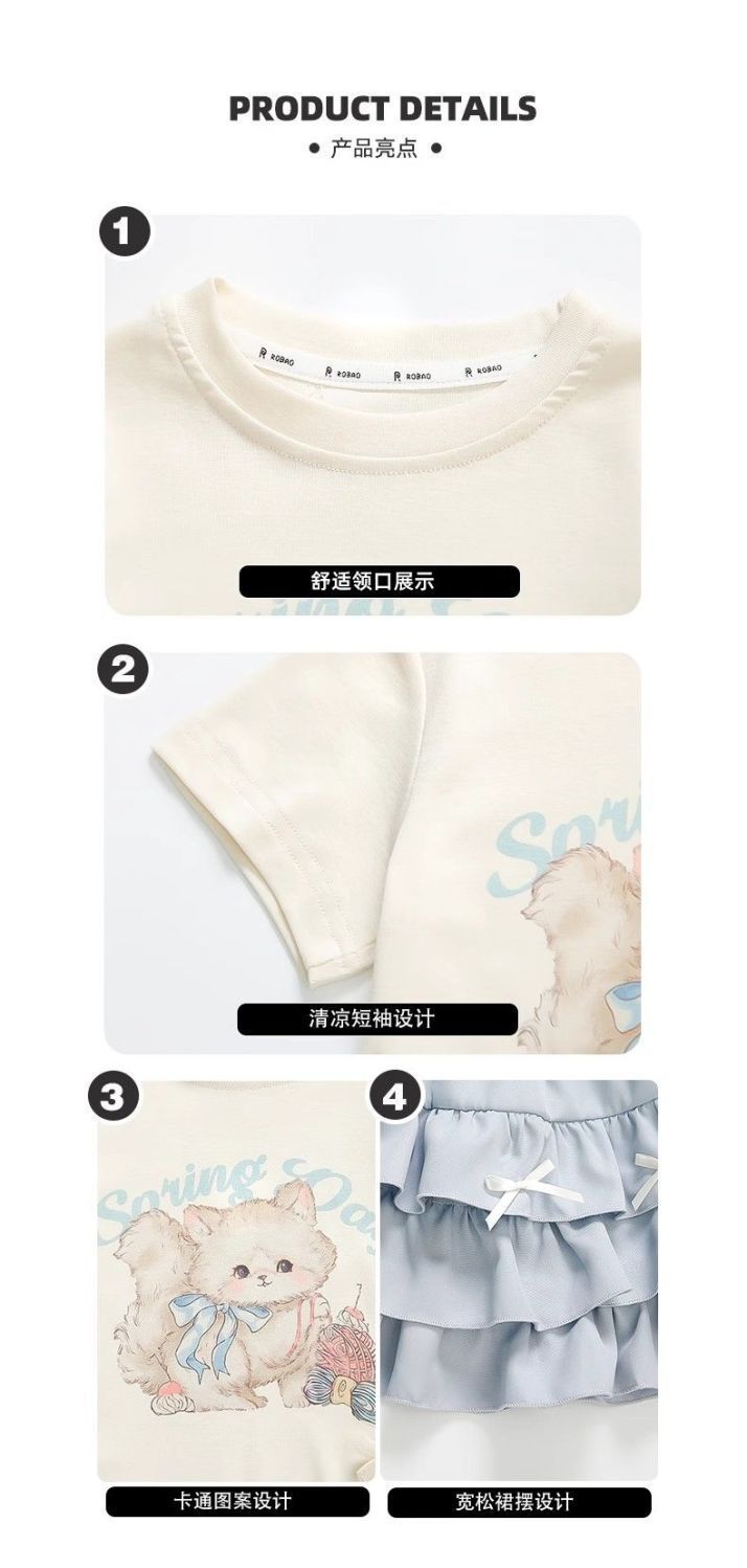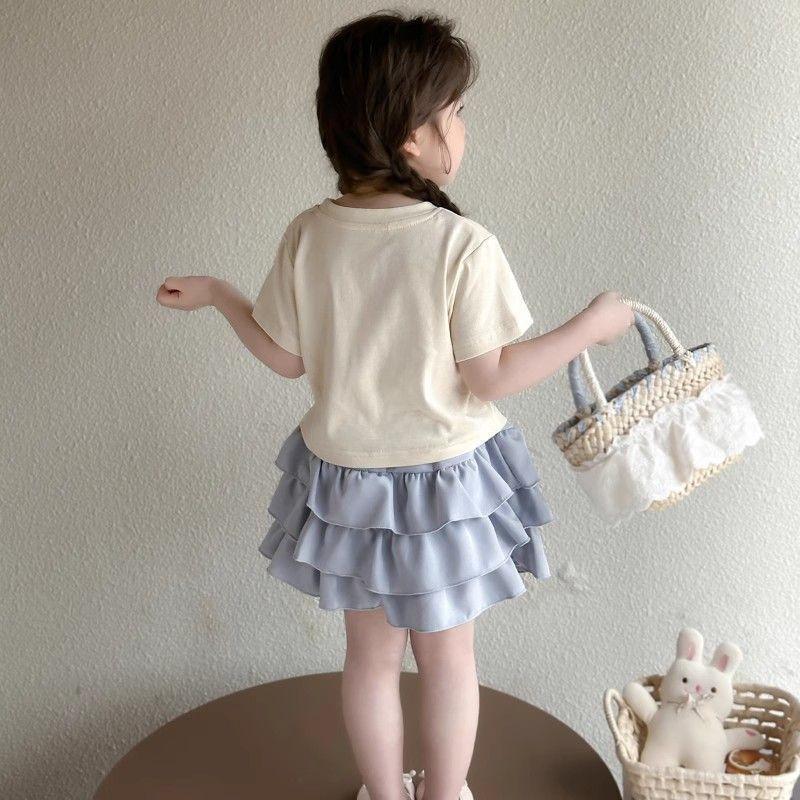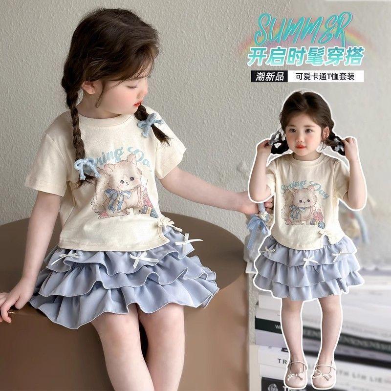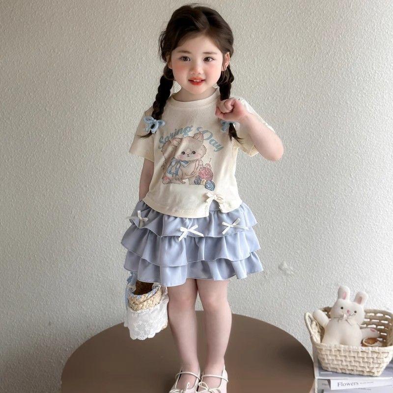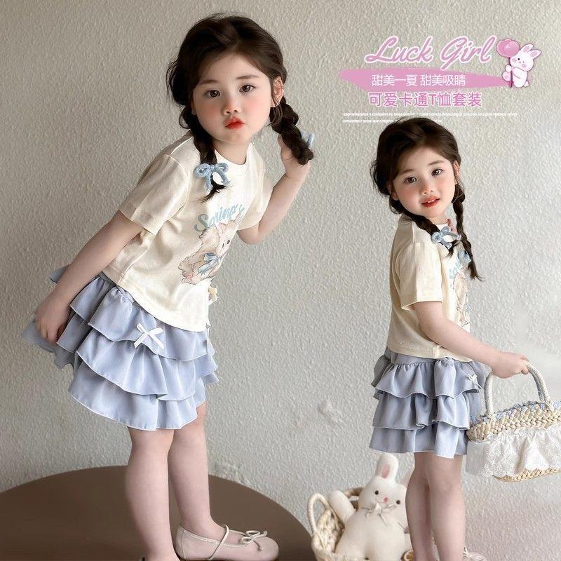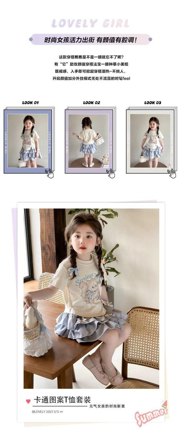 Conjunto de Verano para Niñas Único Dulce Bebé Camiseta de Dibujos Animados Falda Corta Conjunto de Dos Piezas 2025 Nueva Ropa de Verano para Niños