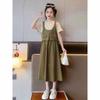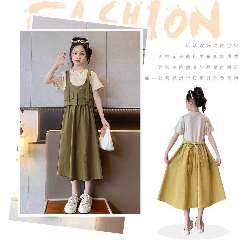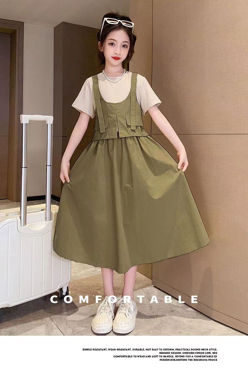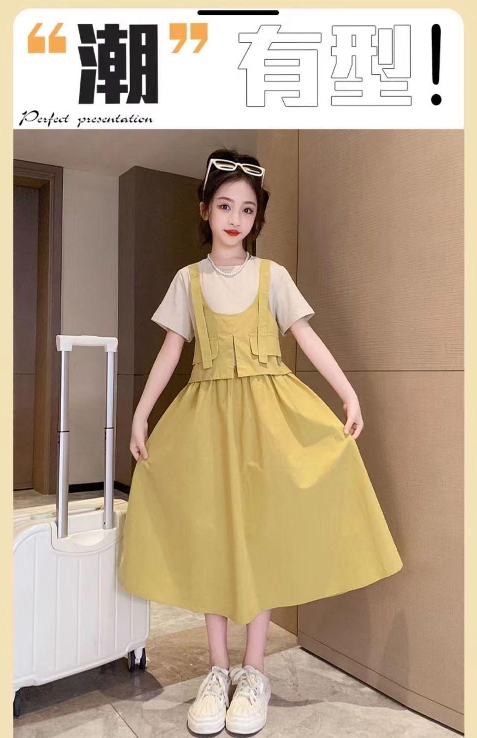 Vestido de niña Verano 2024 Nuevo Estilo Occidental Falda con tirantes para niña Moda infantil de dos piezas falsas Vestido de niña