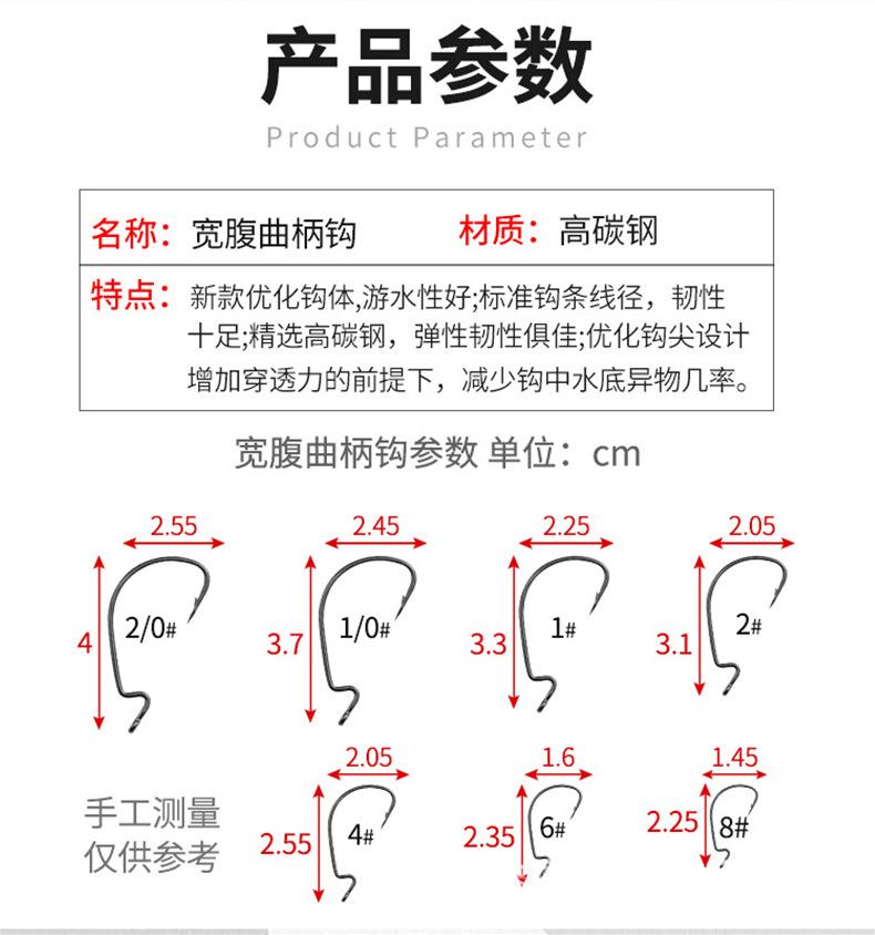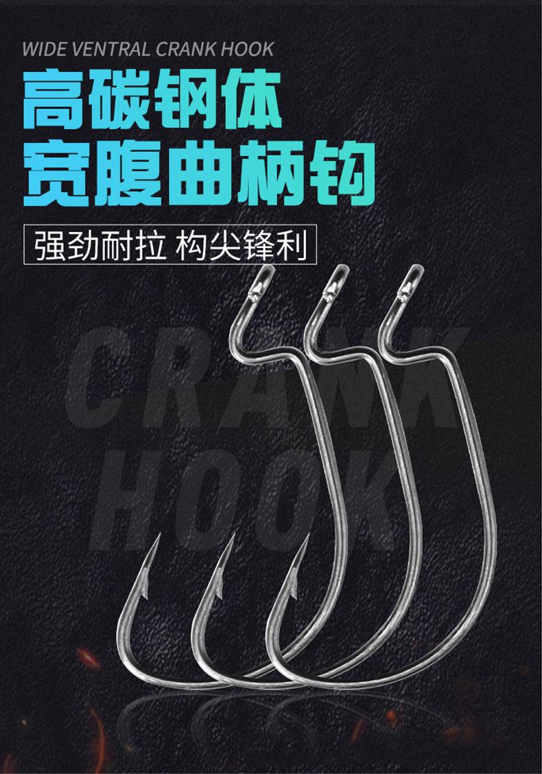 Señuelo gusano blando anzuelo crank de vientre ancho/anzuelo crank de acero al carbono alto níquel negro/Señuelo de cebo blando anzuelo crank venta al por mayor de fábrica