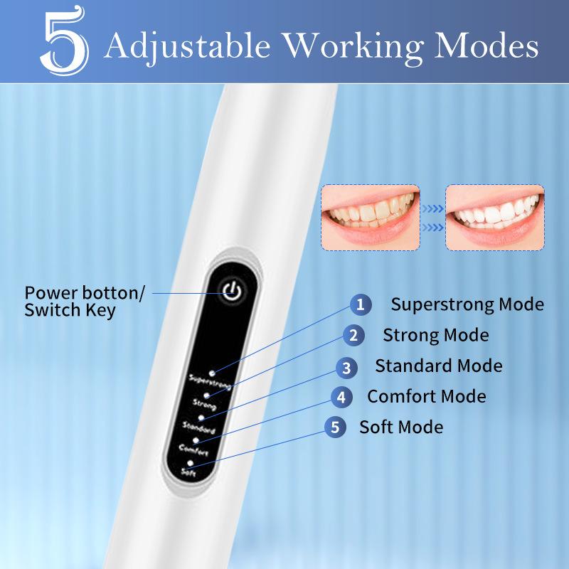 5 modos de funcionamiento (modo de limpieza de 1, 2 y 3 dientes, modo de cepillado de 4 y 5 dientes)