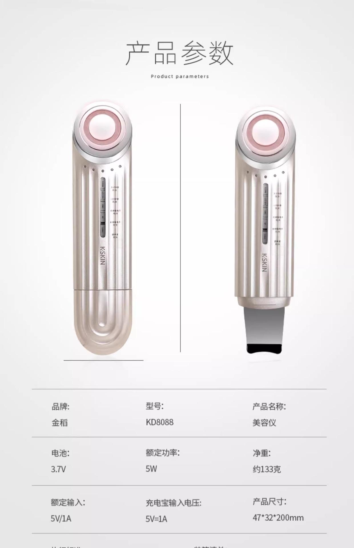 Arroz Dorado Instrumento de Belleza Multifuncional Máquina Pala Ultrasónica Instrumento de Belleza Facial Pala para Puntos Negros Limpiador de Poros KD8088