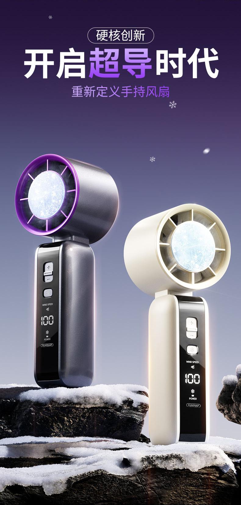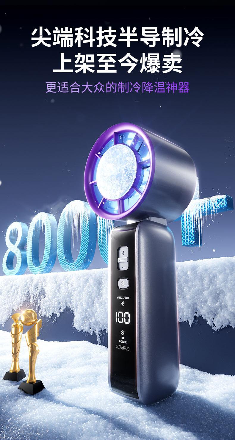 2025 mini ventilador de mano portátil de alta velocidad transfronterizo refrigeración por semiconductores portátil 100 ajustable ventilador de hielo para exteriores