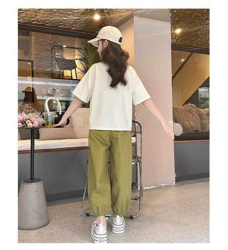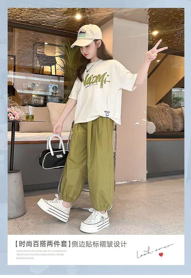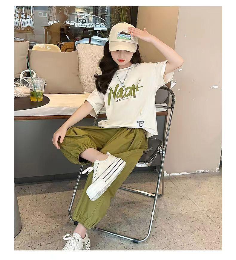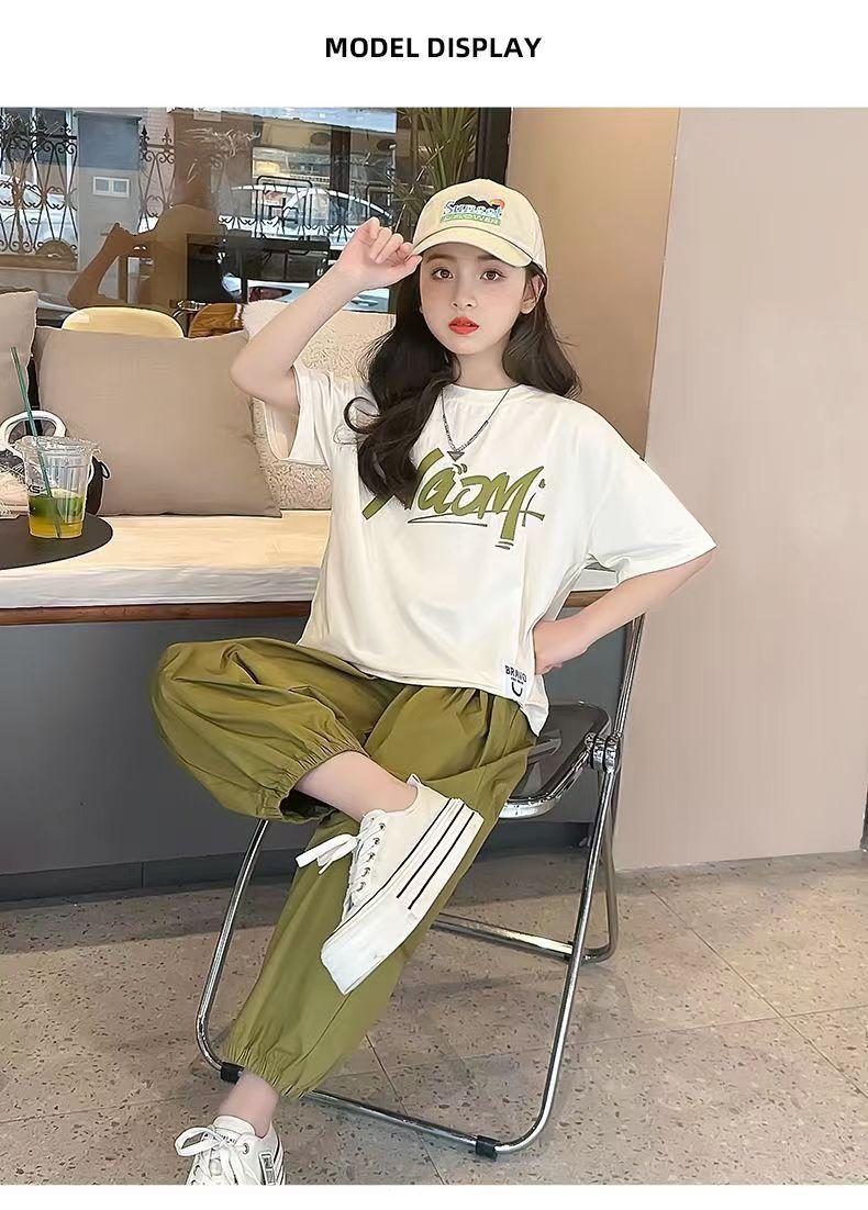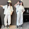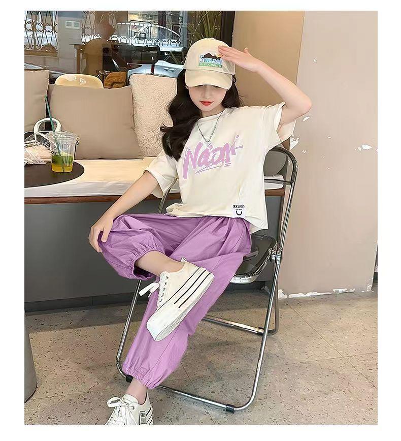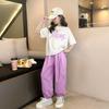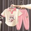 Traje de verano para niñas Delgado 2024 Nuevo estilo Pantalones deportivos de verano estampados de manga corta para niños