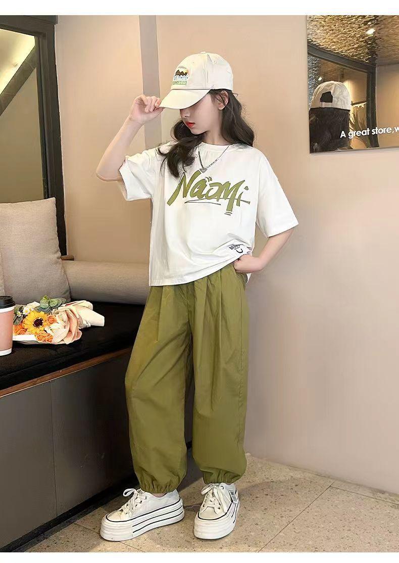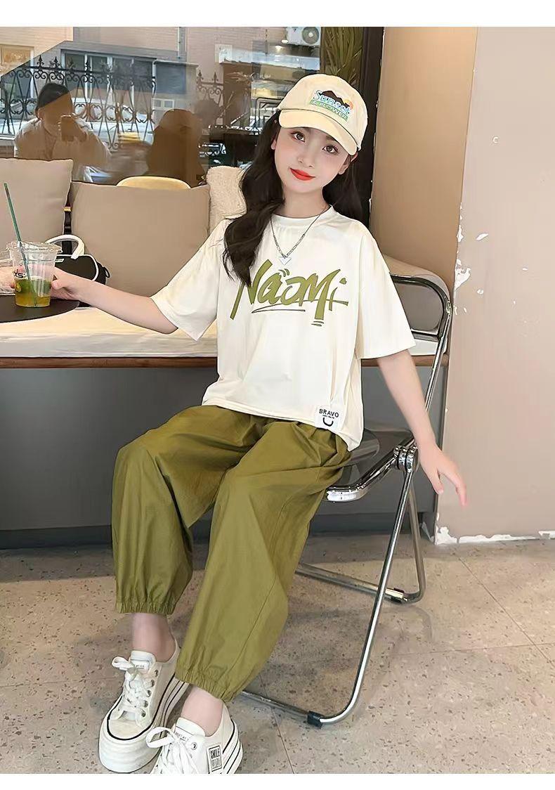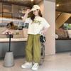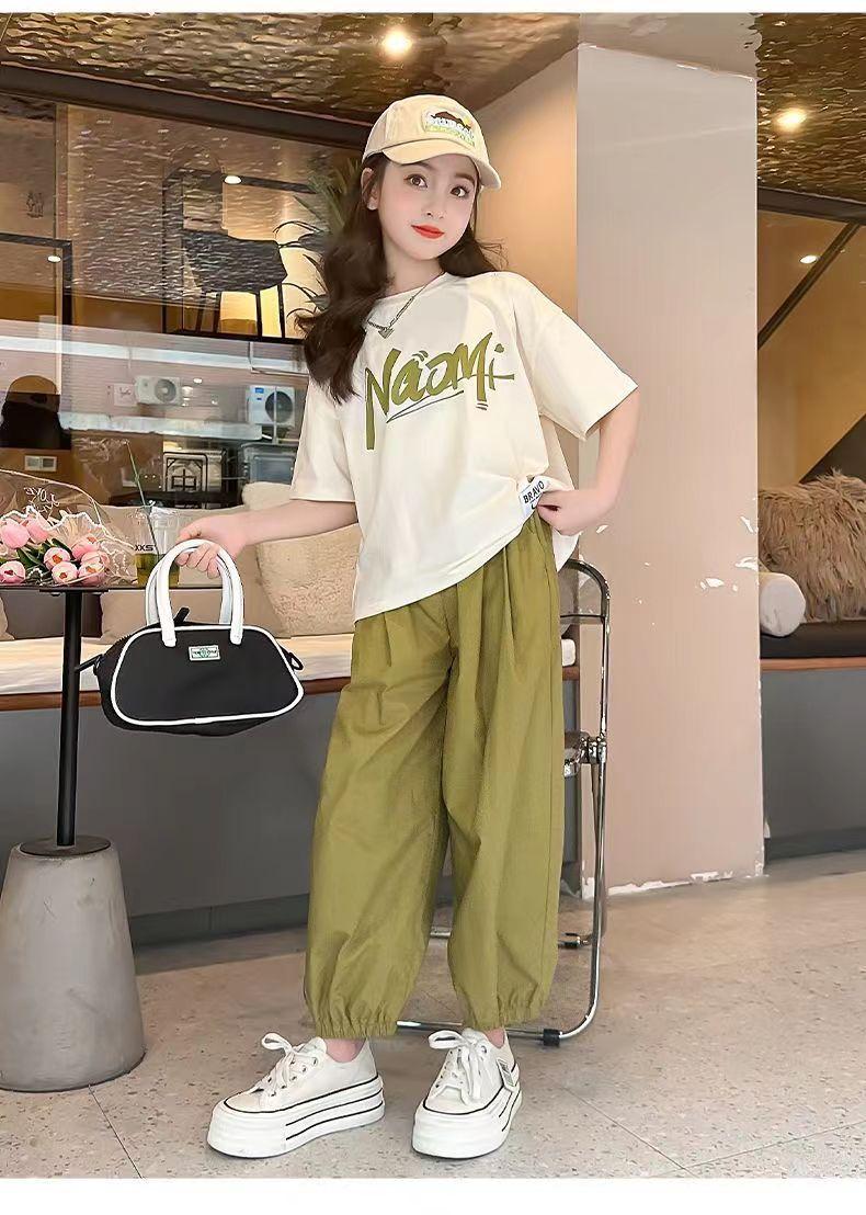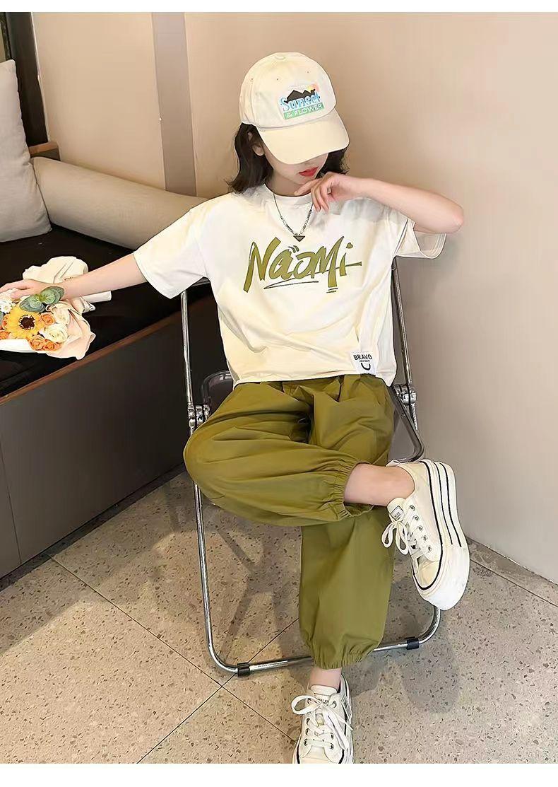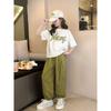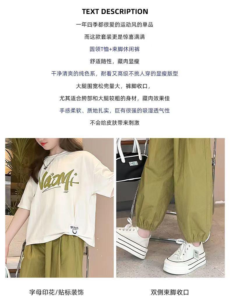 Traje de verano para niñas Delgado 2024 Nuevo estilo Pantalones deportivos de verano estampados de manga corta para niños