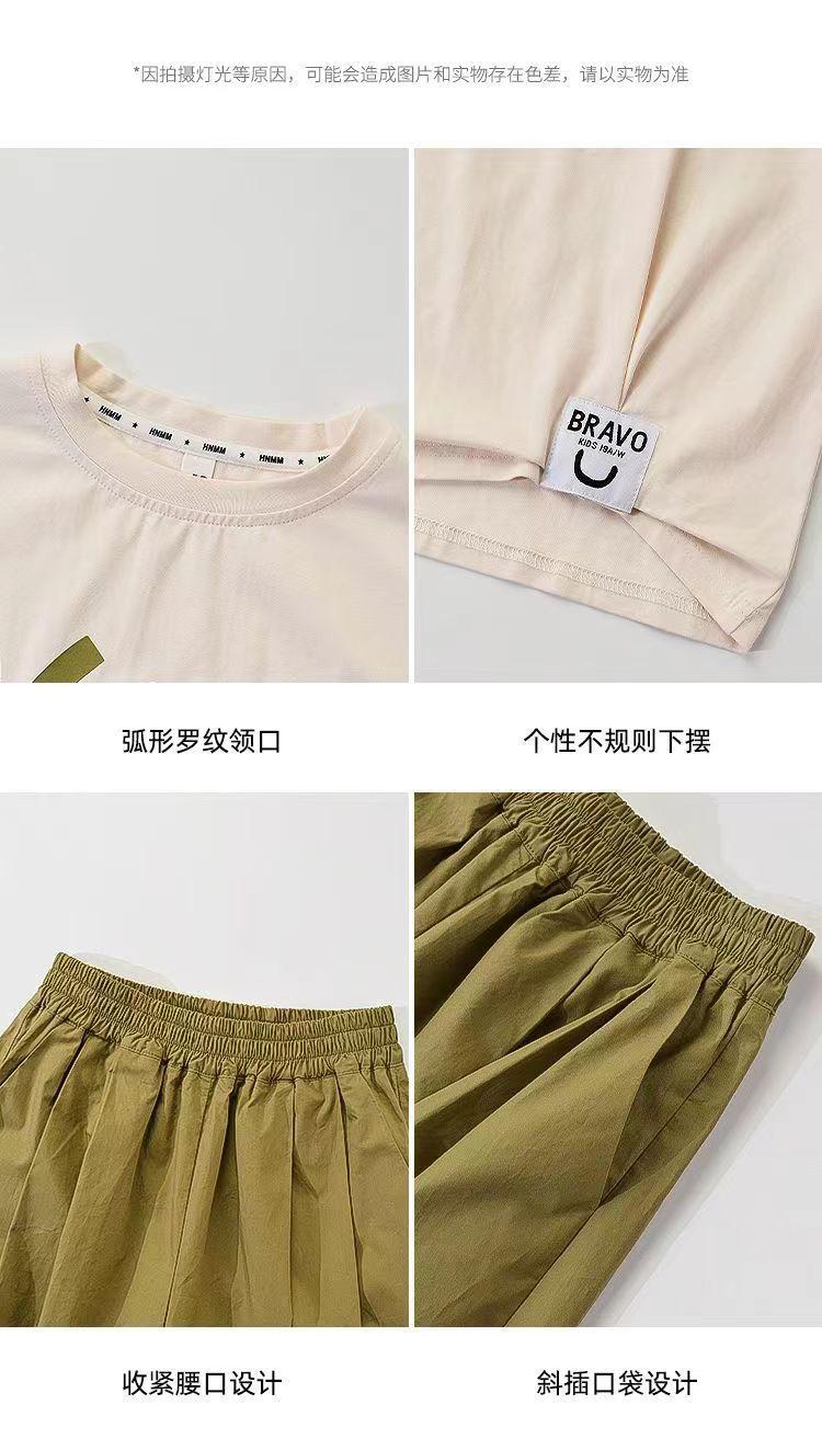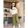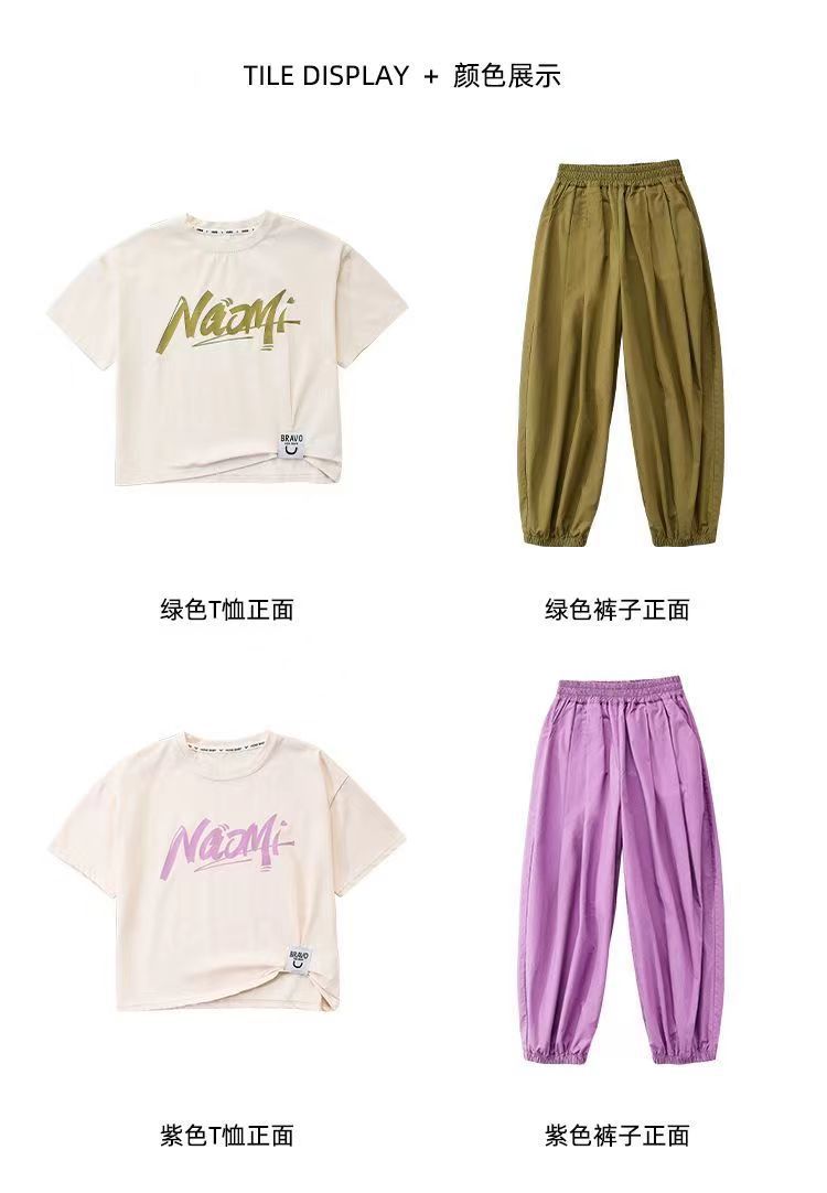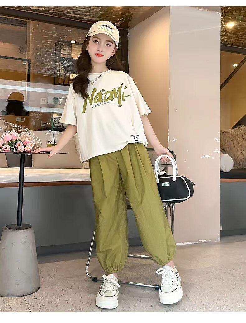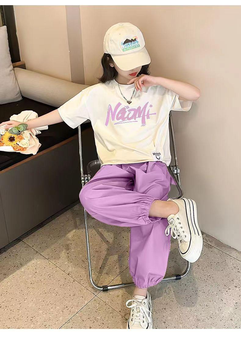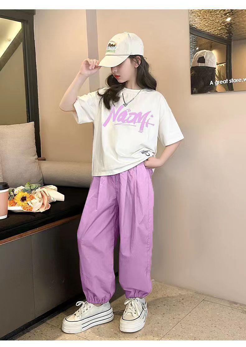 Traje de verano para niñas Delgado 2024 Nuevo estilo Pantalones deportivos de verano estampados de manga corta para niños