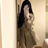 Primavera 2025 Nuevo Abrigo de Perfil Suelto de Largo Medio Estilo Británico Blanco Gabardina con Cordones de Doble Botonadura para Mujer