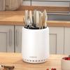 Gran Capacidad con Diseño de Partición Inteligente Este porta cuchillos de cocina cuenta con una estructura de almacenamiento multizona que organiza ordenadamente cuchillos, palillos, tenedores, cucharas y más.. Cada sección está dimensionada para diferentes utensilios, y las ranuras extendidas para cuchillos se adaptan a la mayoría de las formas de cuchillos sin limitación.