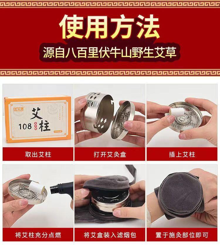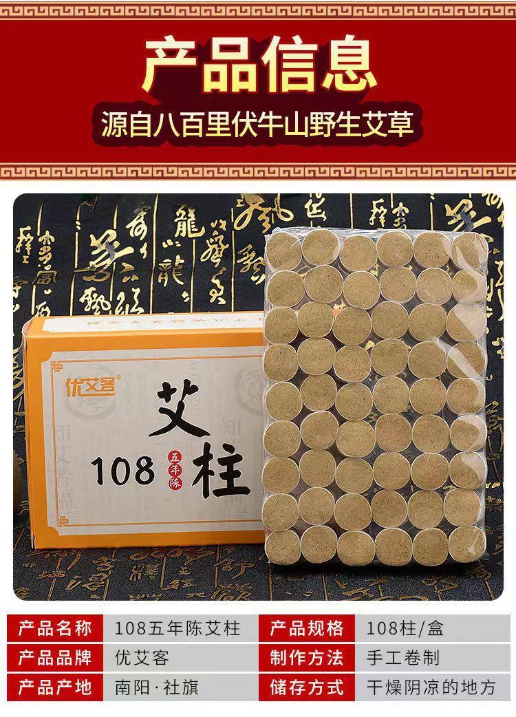 Caja de 108 Barras de Moxa Rollos de Moxa Barras de Moxa Granos de Moxa Envejecida Tres Años Fabricante de Nanyang Venta al por Mayor Rollos de Moxa Pura Sin Humo Barras de Cauterio de Moxa