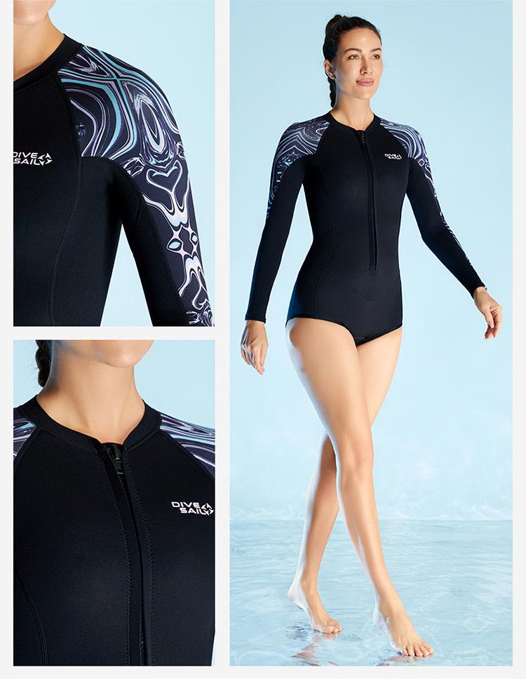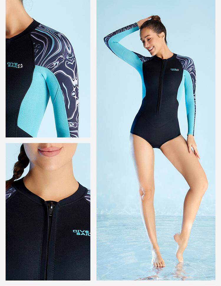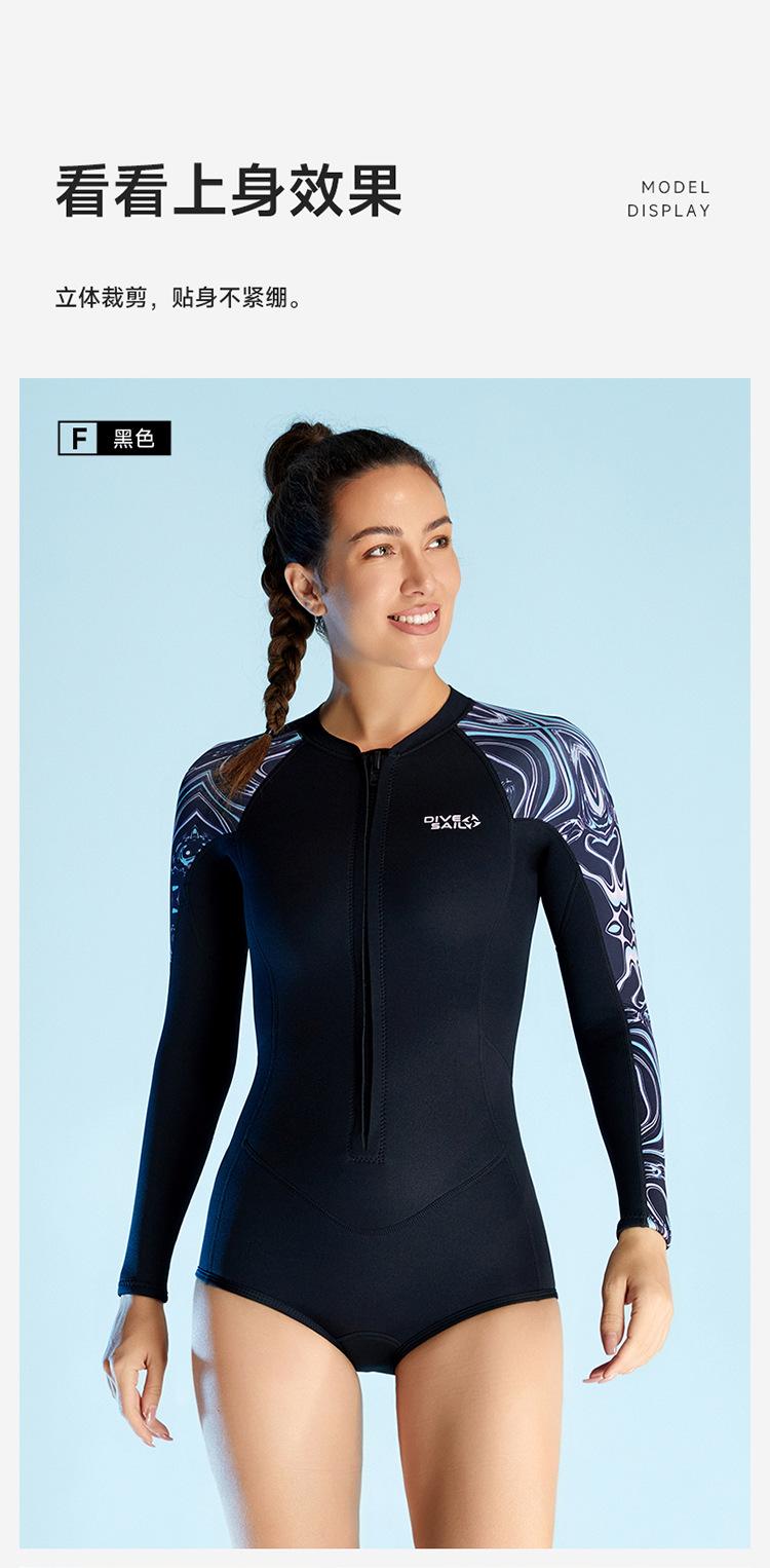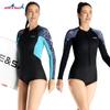 Traje de buceo cálido de 2 mm para mujer, de una pieza, de manga larga, con shorts, traje de esnórquel a prueba de frío para surf, natación, buceo, venta al por mayor