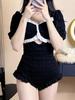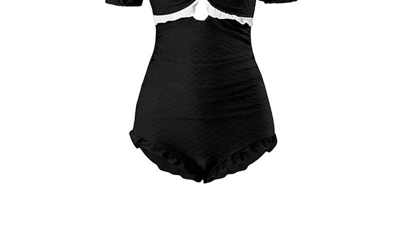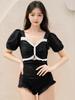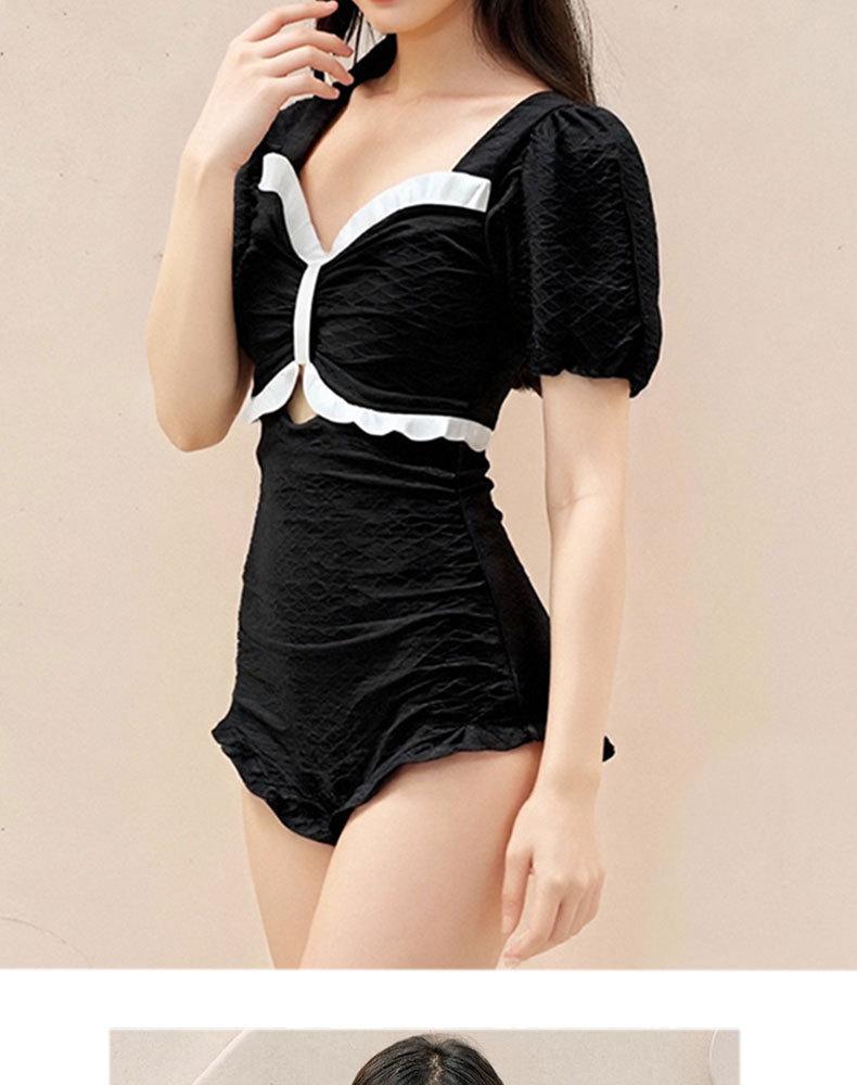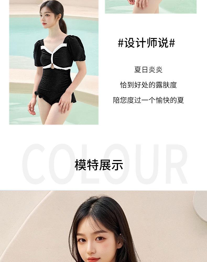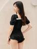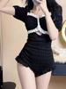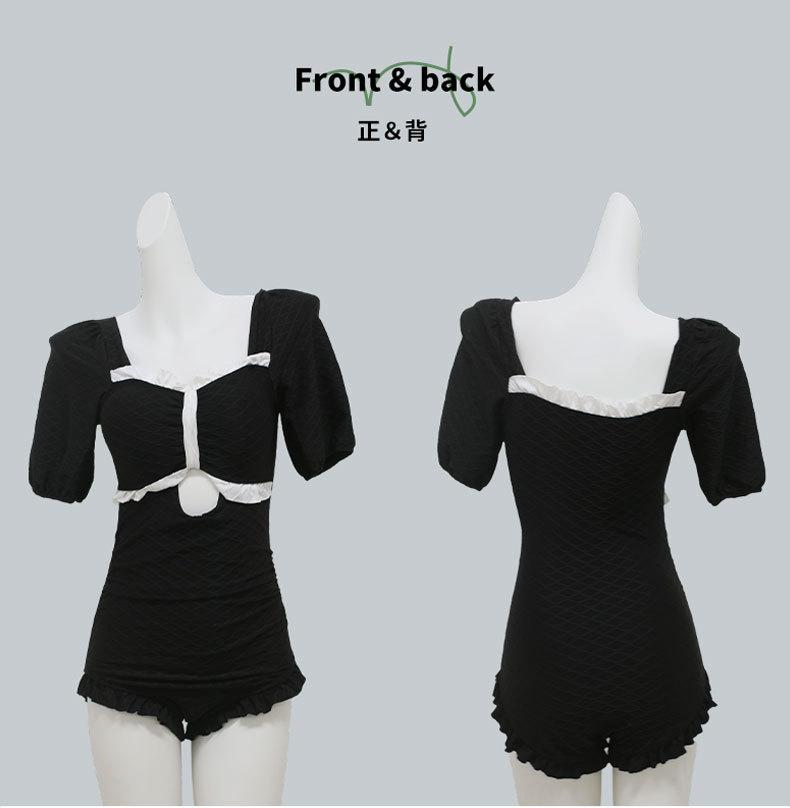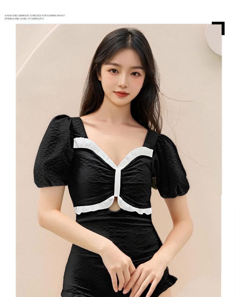 Traje de Baño Popular para Mujer 2025 Nuevo Negro Entero Cubre Vientre Adelgazante Estilo Falda Bóxer Aguas Termales Conservador