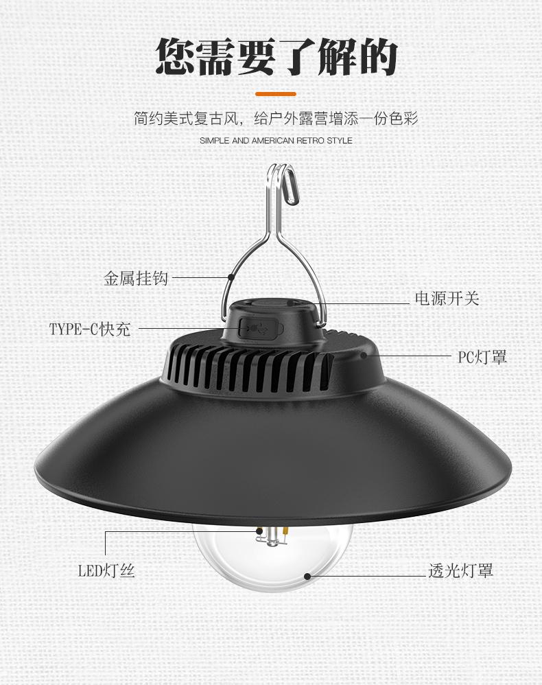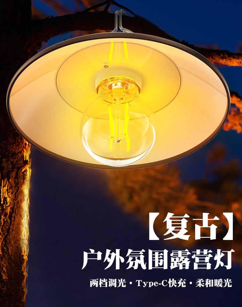 Luces de camping retro para exteriores, iluminación ambiental de larga duración, carpa de camping, toldo, luces colgantes LED recargables para campamento