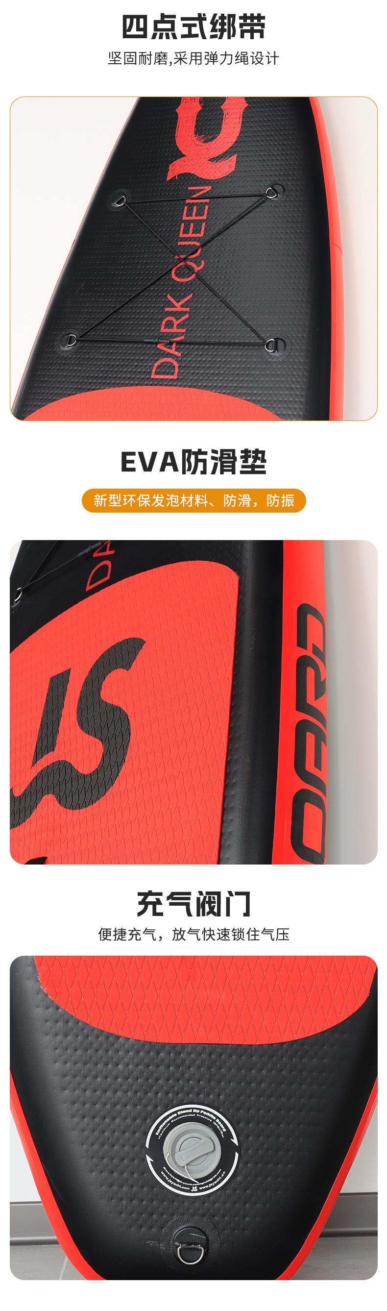 Black and red paddle board, Black and white paddle board, Blue paddle board, Yellow paddle board