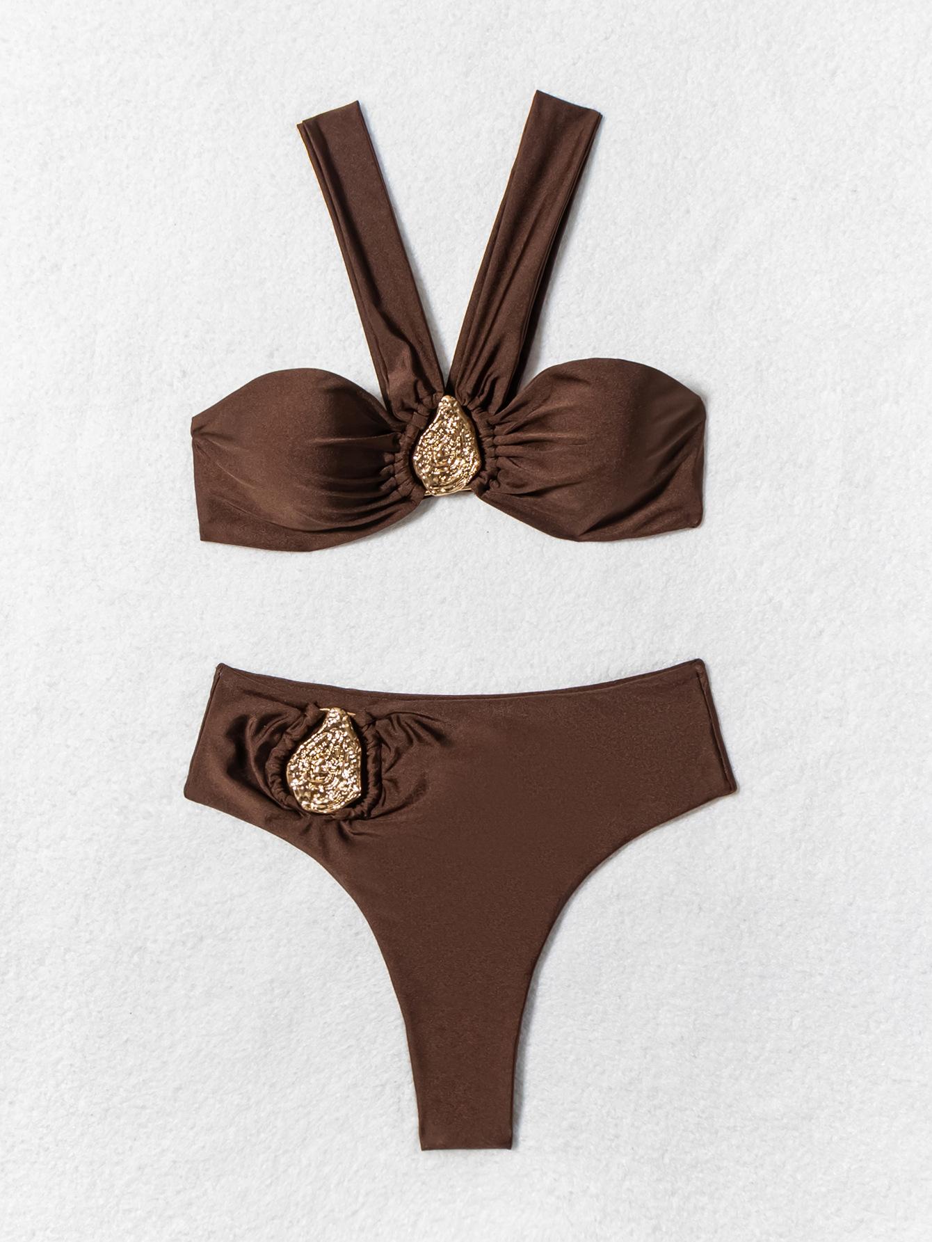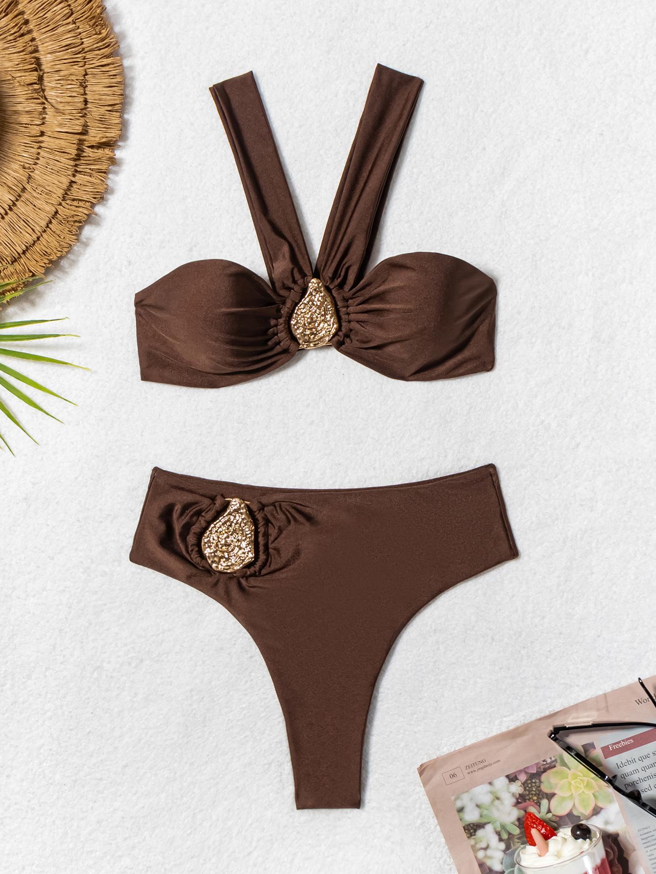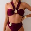2025 Nuevo Bikini Transfronterizo Traje de Baño para Mujer Accesorios de Metal Europeo y Americano Sexy Moda Traje de Baño Fábrica Stock Listo Venta al por Mayor