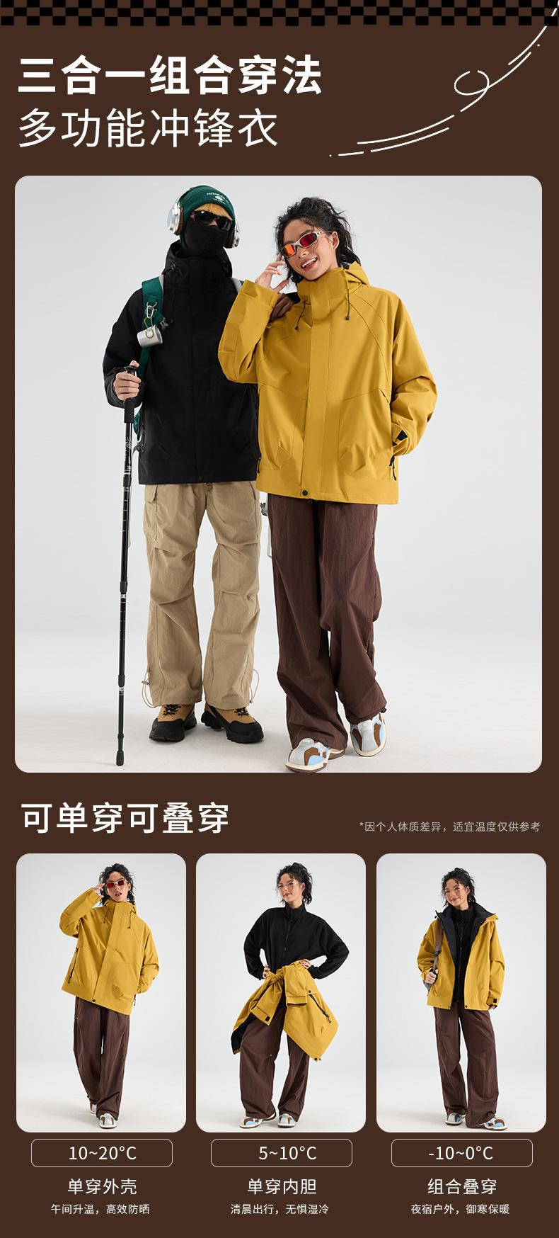 Chaqueta para Exterior para Mujer Nueva Chaqueta Desmontable Tres en Uno para Hombre Cortavientos e Impermeable para Senderismo con Forro Polar para Montañismo