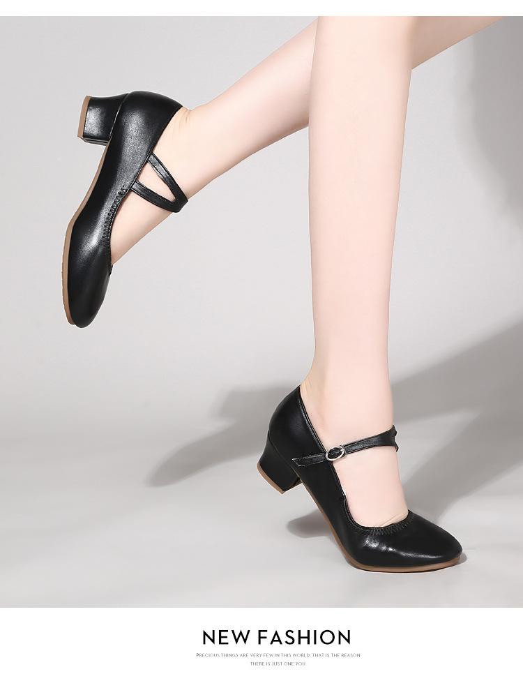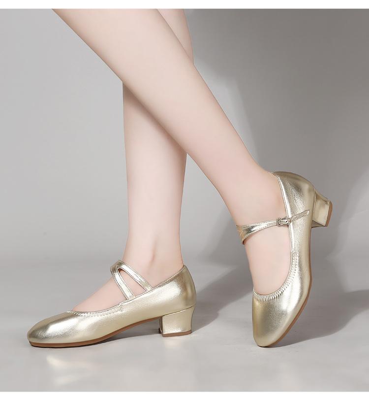 Zapatos de Baile Cuadrado Transfronterizo 2025 Zapatos de Baile para Mujer Suela Suave Doble Hebilla Zapatos de Baile Tacón Bajo Zapatos de Baile Zapatos de Profesor para Mujer