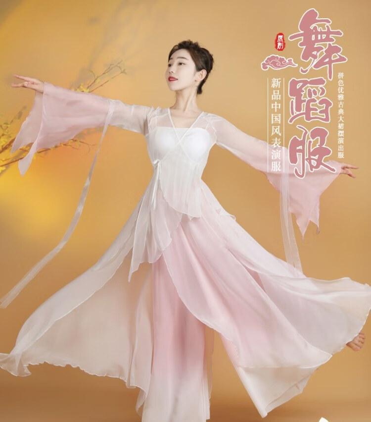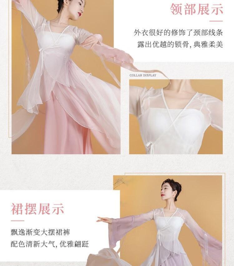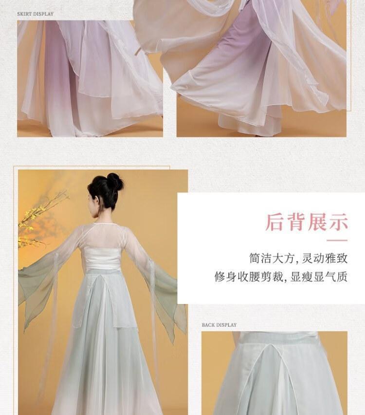 Traje de Danza Clásica Elegante Traje de Gasa de Hada Traje de Entrenamiento Hanfu Chino Traje para Actuación de Mesa Traje Traje de Entrenamiento Antiguo