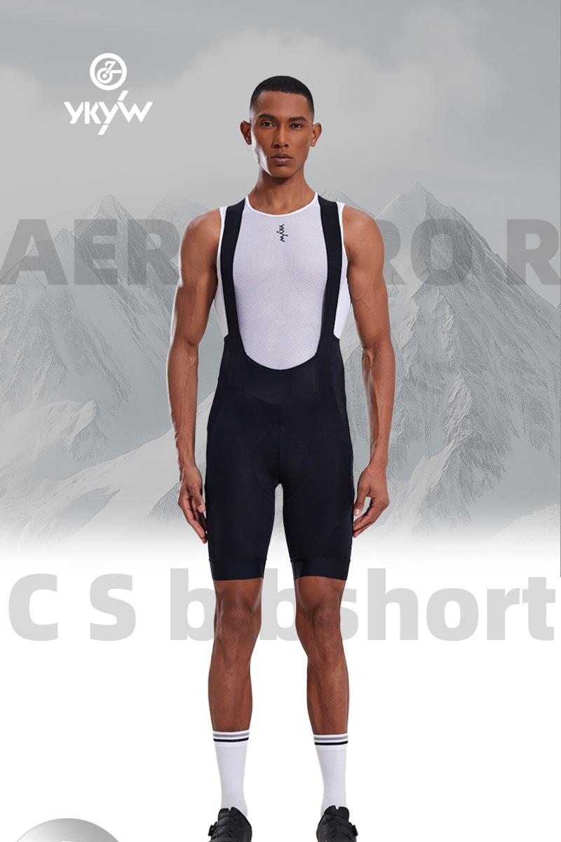 YKYW Pantalones de Ciclismo con Tirantes para Hombre Verano Tejido Carvico Carretera Coche Acolchado Doble Flecha Profesional Competitivo Shorts