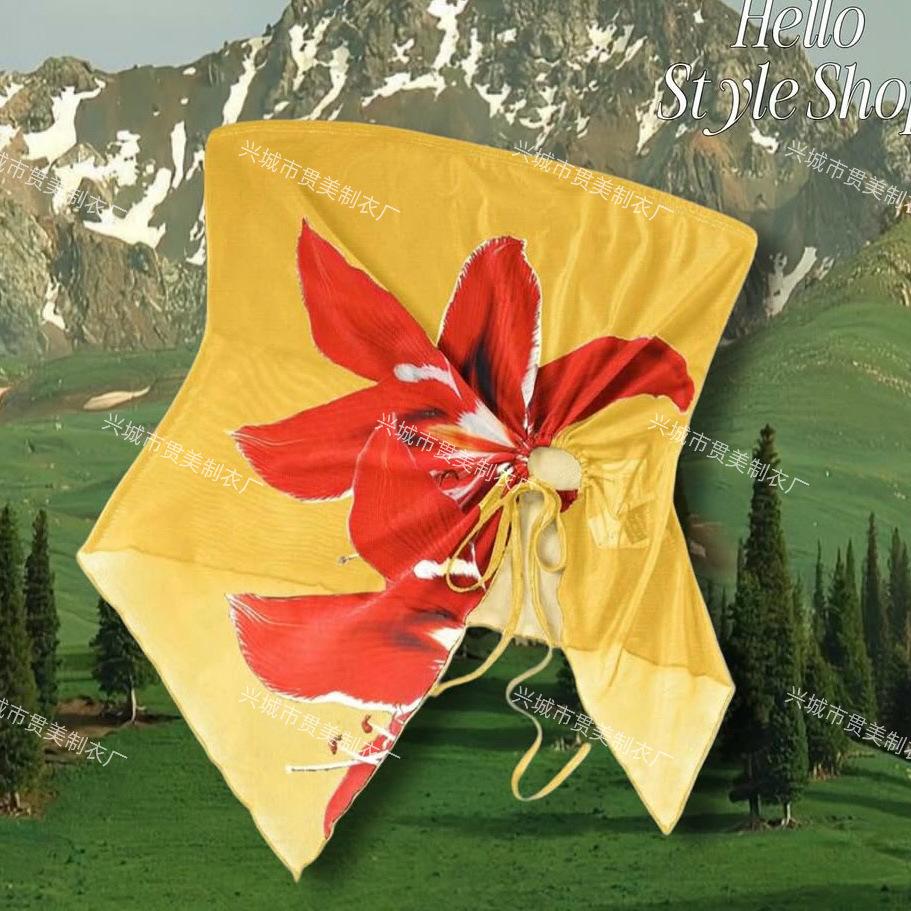 Colección] Nuevo Sexy Retro Color Puro Casual Elegante Top de Tubo Estampado Floral Vacaciones en la Playa Bikini